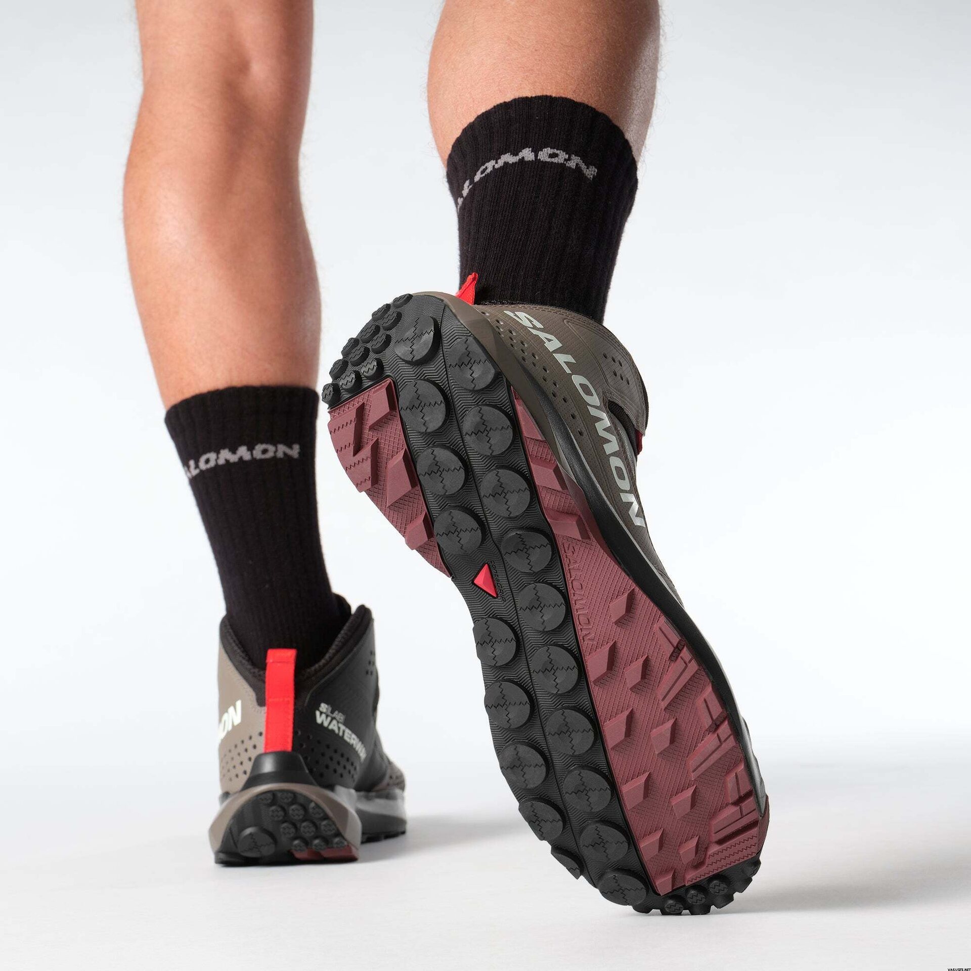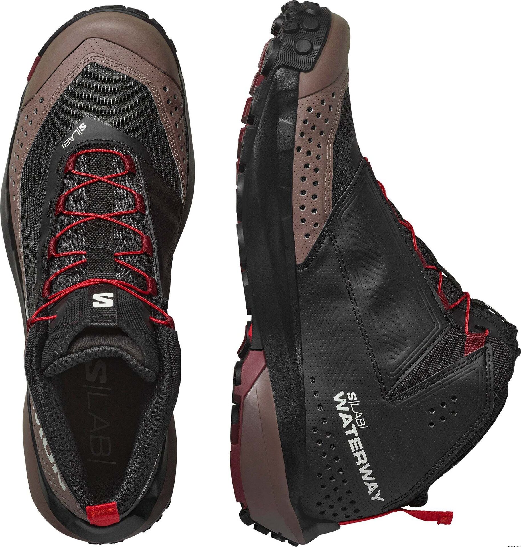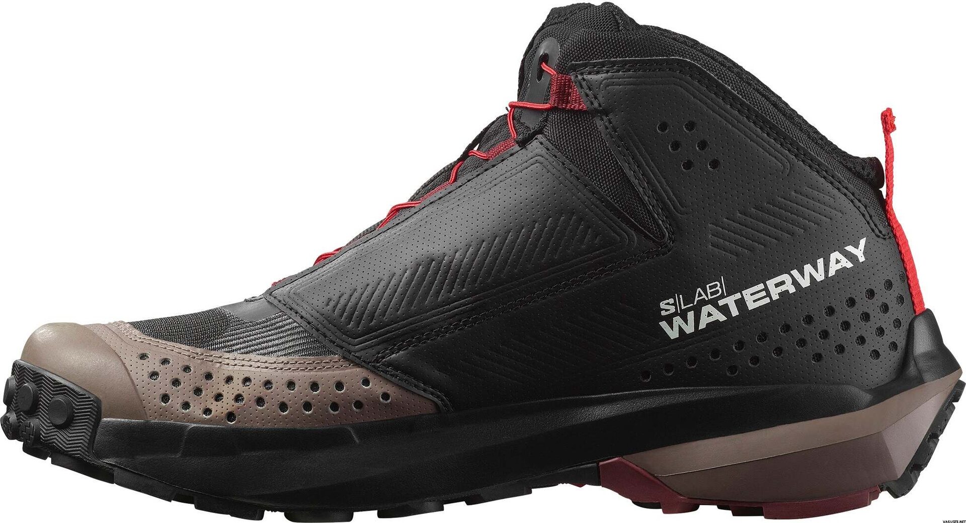 The Salomon S/Lab Waterway is crafted for those who traverse both water and trails, offering seamless transitions between the two. These outdoor shoes feature a distinctive hybrid upper that efficiently drains and dries, while providing protection from the elements. The shoes are not waterproof. The unique outsole design ensures reliable grip and traction, even on challenging terrains.
