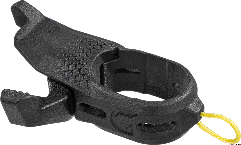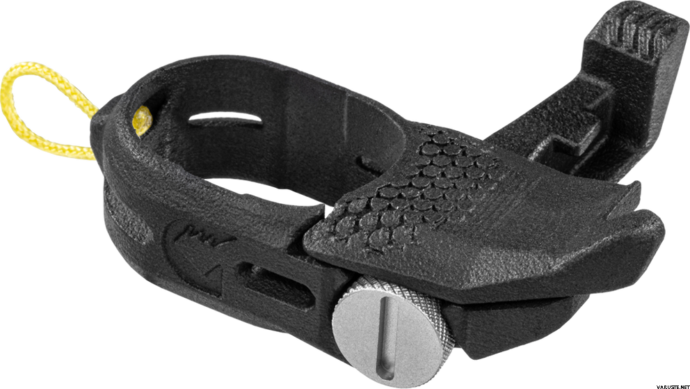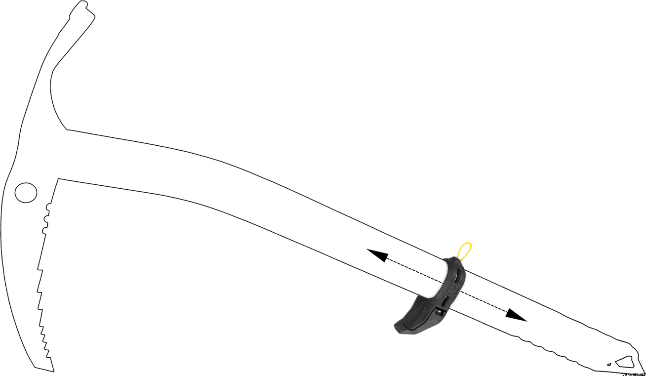 Light and functional removable hand-rest for Grivel ice aces that can slide along the shaft.