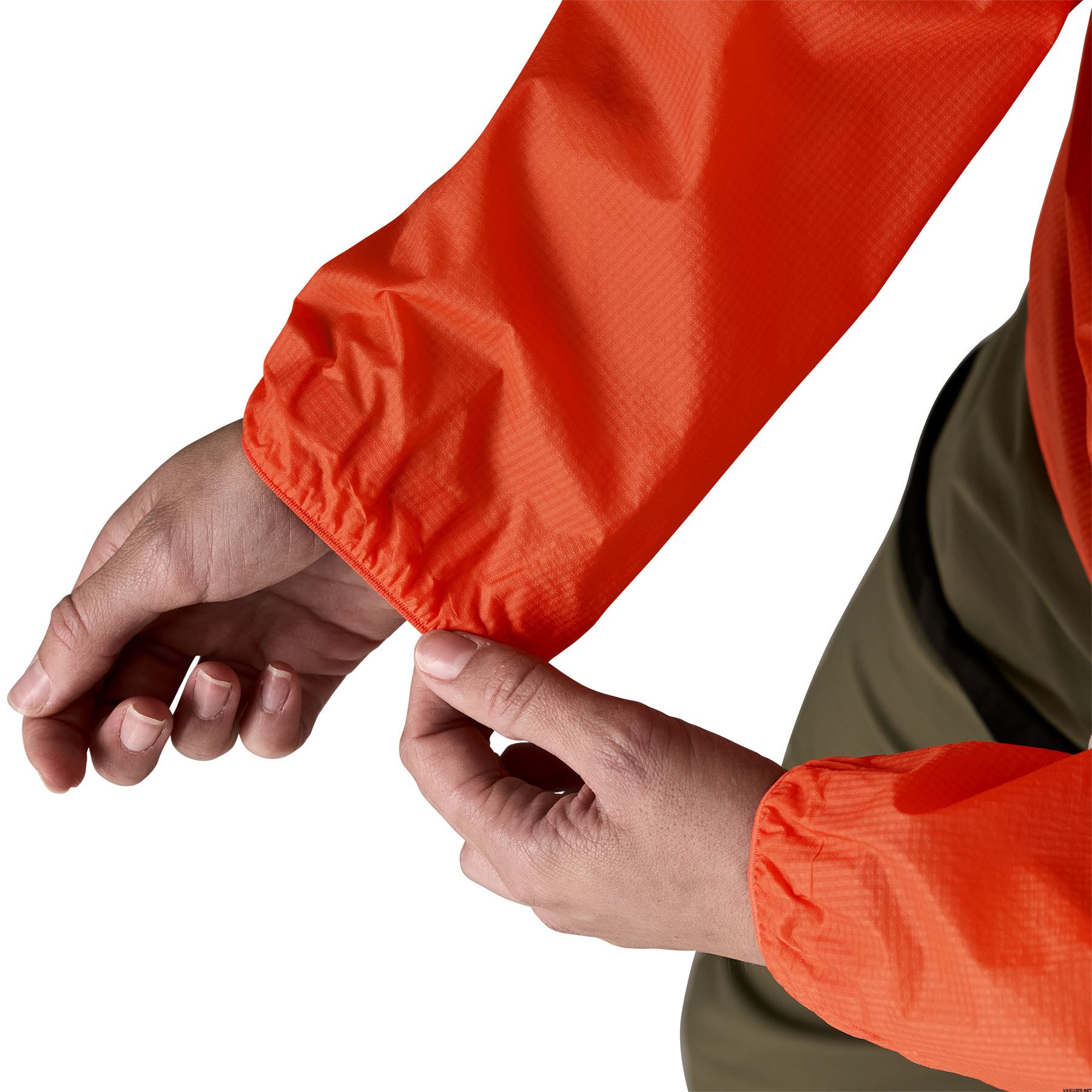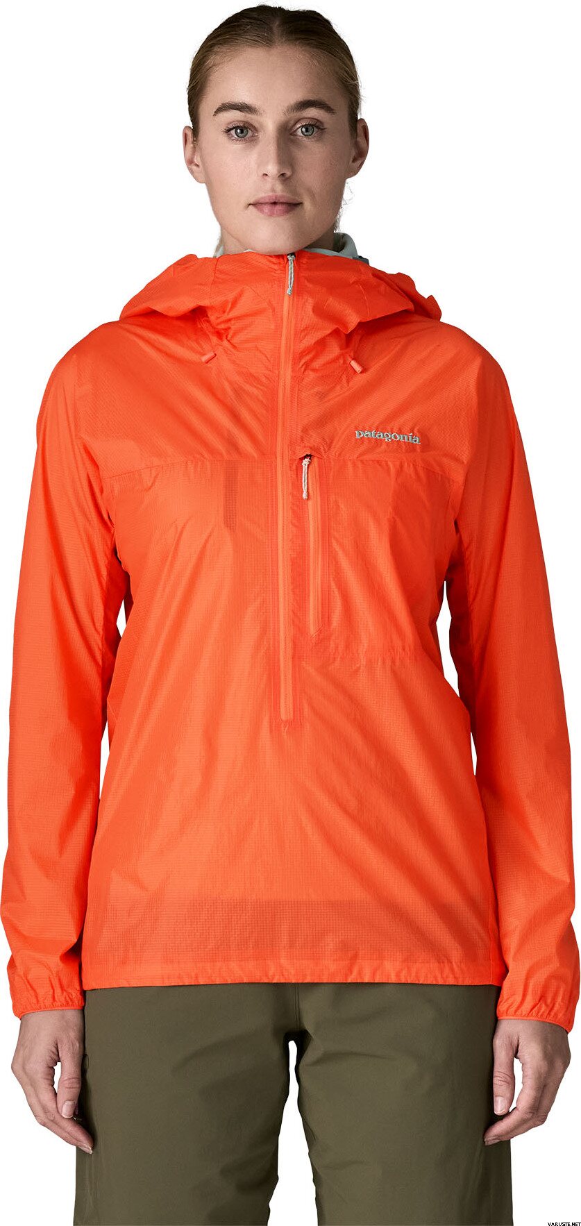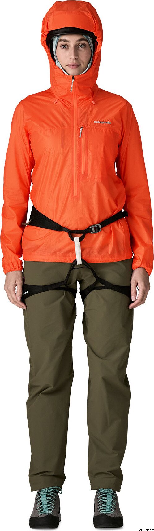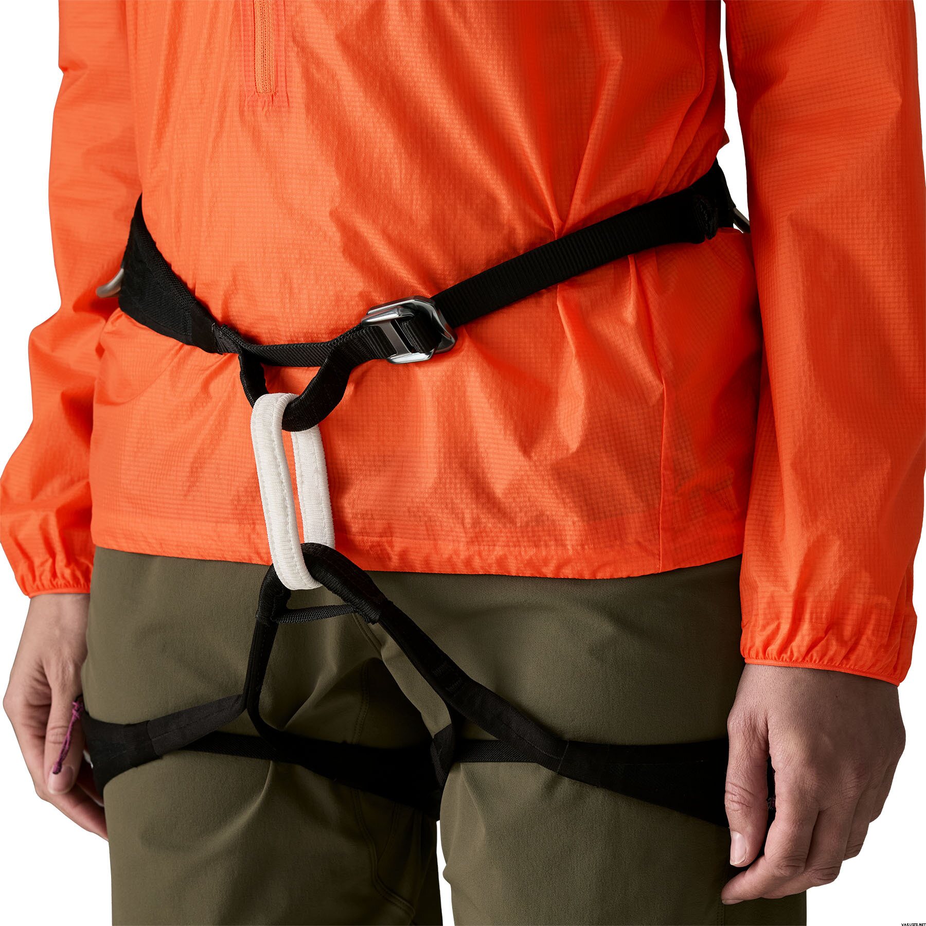 The Patagonia Houdini Rock Jacket Womens is a specialized climbing anorak crafted for multipitch rock climbing. Jacket offers wind and weather resistance, ensuring climbers stay comfortable during challenging ascents. Its slim-fit design with extended waist remains secure under a harness, while the overhead mobility feature supports dynamic movements. Part of the Free Wall Kit, this jacket is tailored for demanding routes, providing climbers with the necessary support for their adventures.