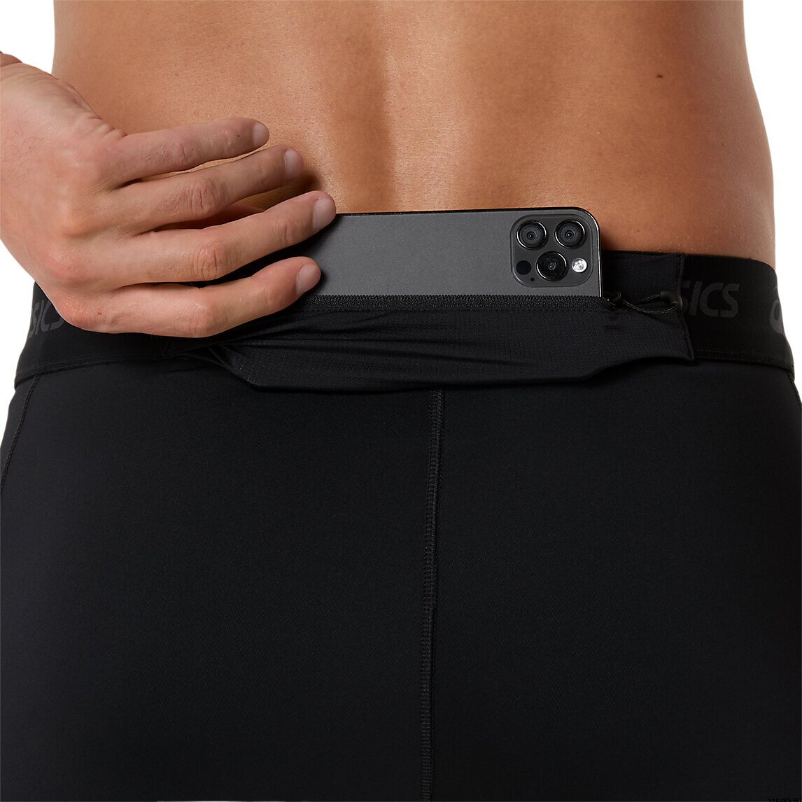 Asics Road Tight Mens stands out as a comfortable, storage-focused choice for runs across different seasons. These running tights use a stretchy, quick-drying fabric that helps manage moisture so the runner can stay focused. Three integrated pockets make it easier to carry essentials, including a secure phone pocket at the back waistband. The main material contains recycled content to help reduce waste and carbon emissions.