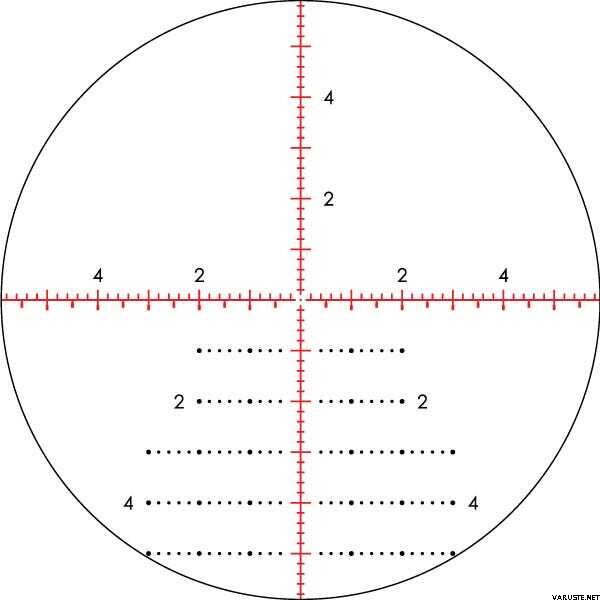 Field of view: 6,25 m - 1,07 m @ 100 m (20.5' - 3.5' @ 100 yds)