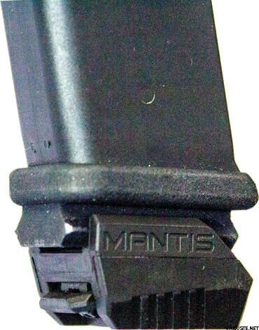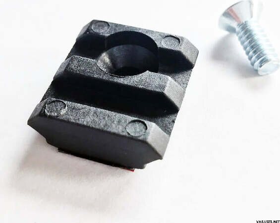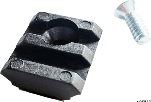 A Picatinny rail adapter that bonds to the bottom of an existing magazine floor plate so the MantisX can be attached to the firearm. Features a hole and screw for attachment to a bow.