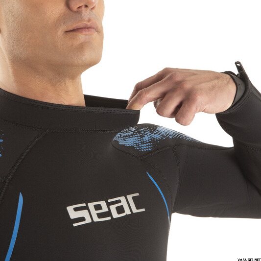 The Seacsub Cover 7mm Mens diving wetsuit is crafted for exceptional comfort and flexibility. This one-piece suit, made from ultra-stretch neoprene, ensures easy wear and removal with its robust rear zipper. Designed to enhance your diving experience, it offers excellent freedom of movement and durability, thanks to anti-abrasion inserts on stress-prone areas like shoulders and knees. The Aqua Stop system with Smooth Skin inserts effectively prevents water seepage, providing a snug fit at the neck, wrists, and ankles.