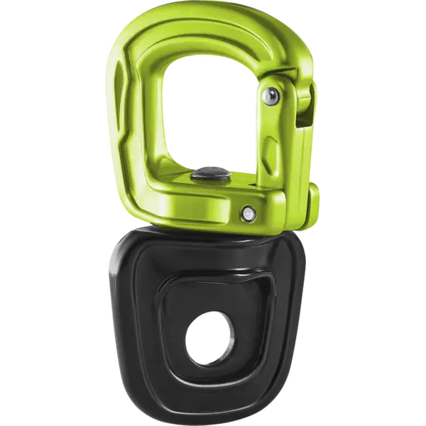 Edelrid Cupid Swivel Mix stands out by combining a fixed eyelet and a reopenable eyelet in one smooth-rotating swivel for reliable twist management. These swivels are designed for rigging and connection points where rotation under load helps keep systems aligned. A built-in anti-twist guard helps keep a clipped carabiner correctly oriented to reduce the risk of cross-loading. The open side uses a mechanical screw-locking design, allowing repeated opening and closing without needing to swap out the screw.