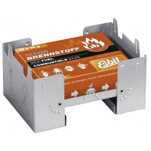 Made of electrolytic galvanized steel - Including 12 solid fuel tablets - each 14 g - Cooking grade is selectable in two steps - suitable for cups, pots and pans