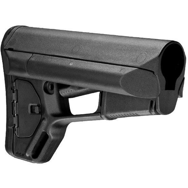 Product descriptionThe patented Magpul ACS (Adaptable Carbine/Storage) – Commercial-Spec Model is a drop-in replacement buttstock for AR15/M16 carbines using commercial-spec sized receiver extension tubes. A streamlined, anti-snag profile shields the release latch to prevent accidental activation. Similar to the Magpul CTR®, the ACS also features a supplemental friction lock system that minimizes excessive stock movement for enhanced weapon stability and accuracy*. Dual, rear accessible, water-resistant battery storage tubes and an integral storage compartment in the butt of the stock provides multiple storage options. The ACS comes standard with a 0.30" thick rubber butt-pad which provides positive shoulder purchase to prevent slippage even with body armor or modular gear.