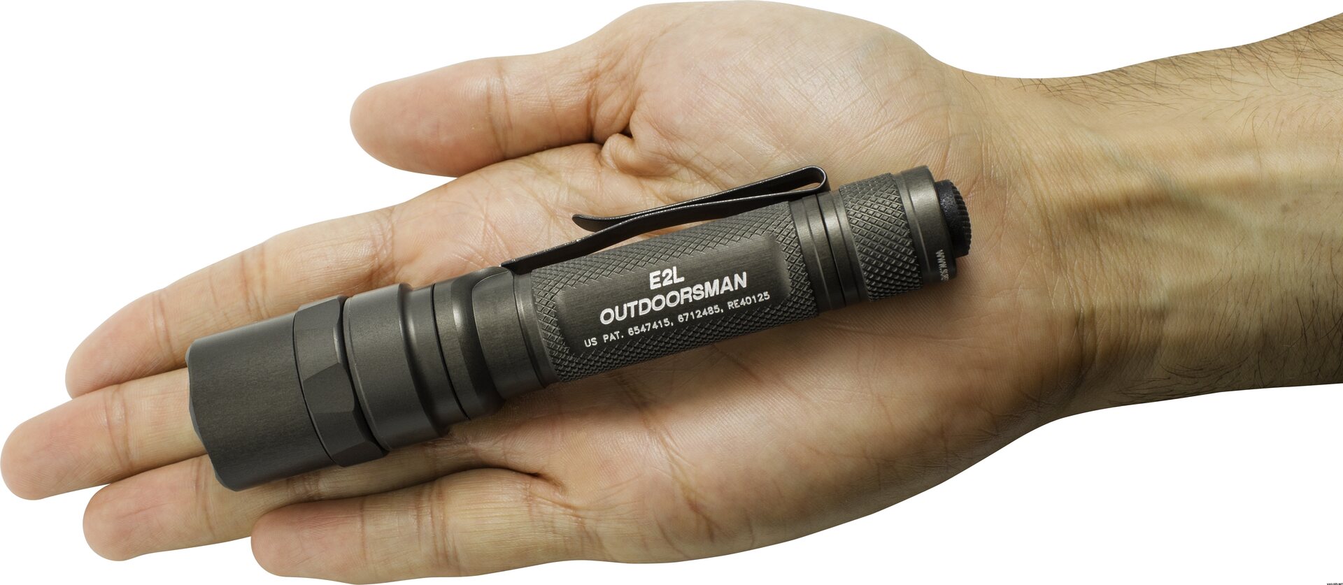 The E2L Outdoorsman — now with 125 lumens of maximum output — is a compact, dual-output, extended-runtime flashlight featuring a virtually indestructible power-regulated LED emitter and a precision Total Internal Reflection (TIR) lens.