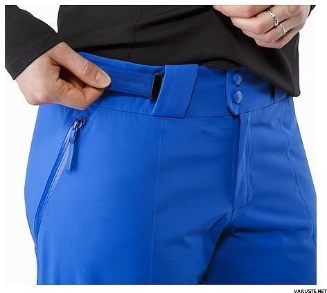 Zippered hand pockets give the Stingray Pant a contemporary look and are large enough to provide functional, secure storage. Zippered thigh vents open to dump heat but prevent snow accumulation inside. Adjustable waist belt with snap closure sits close to the small of the back.