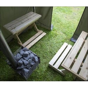 Hiisi benches are ideal for the Hikimaja sauna, the small sauna tent, the Hiisi sauna tent and the JSP sauna tent. One bench is sufficient for the Hikimaja sauna, but the small sauna tent and the Hiisi sauna tent can accommodate two benches each. The JSP sauna tent, on the other hand, is more spacious with room for six benches.