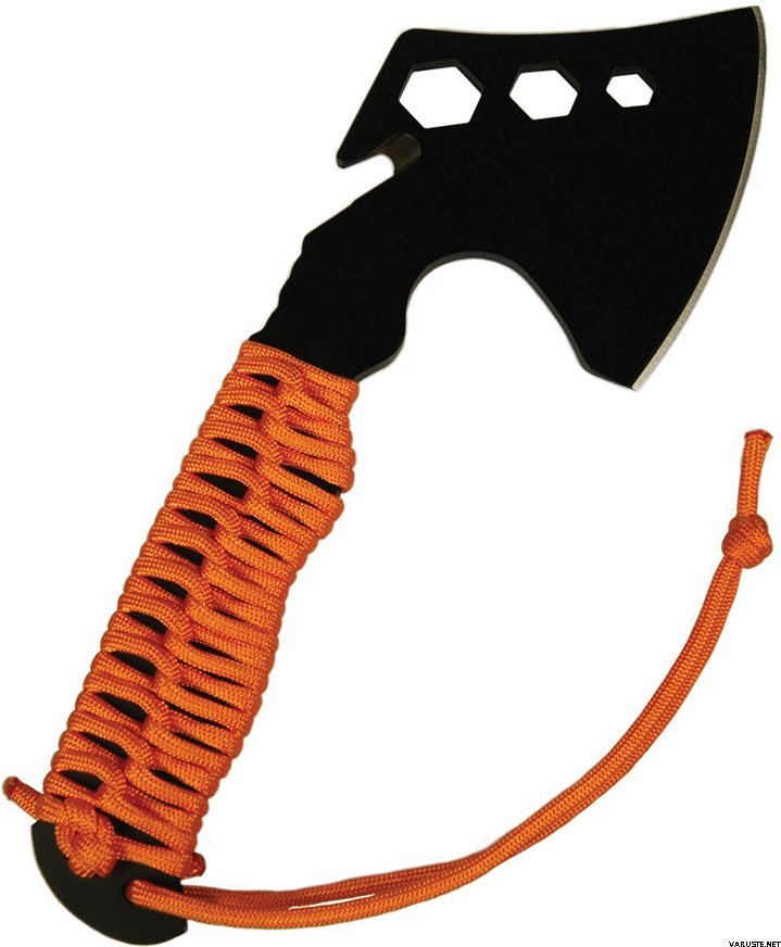 Paracord-wrapped handle can be unwound to provide about 8 feet of paracord