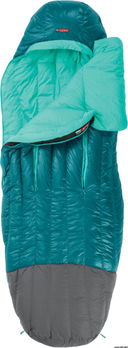 Temp Rating: 15F / -9C°Fill Type Down: DownShell Fabric: 30D Nylon Ripstop w/ DWRFootbox Fabric: 40D Nylon Ripstop OSMO™ w/ DWRLining Fabric: 30D Nylon Taffeta w/ DWRColor: Jade / Sea Glass