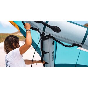 The urge for freedom has motivated us at FLYSURFER to launch the MOJO project. The childhood dream of surfing and our passion for wind-powered water sports flow directly into the product development of our surf wing. The requirement: first in, last out.The MOJO is a highly efficient wing that is optimized to maximize your water time. You can expect easy control, great performance, and the finest balance in the hover state. The MOJO brings you into the line-up as quickly as possible and gets you down the line with ease. Due to its outline, it constantly generates propulsion and relieves the pressure on your body. To get you home safely during long sessions or when the wind is increasing, you can save energy with the Extra Handles. The MOJO’s tubes, inflated separately, give the wing its high rigidity. You will control every gust with ease and use it directly for massive air.