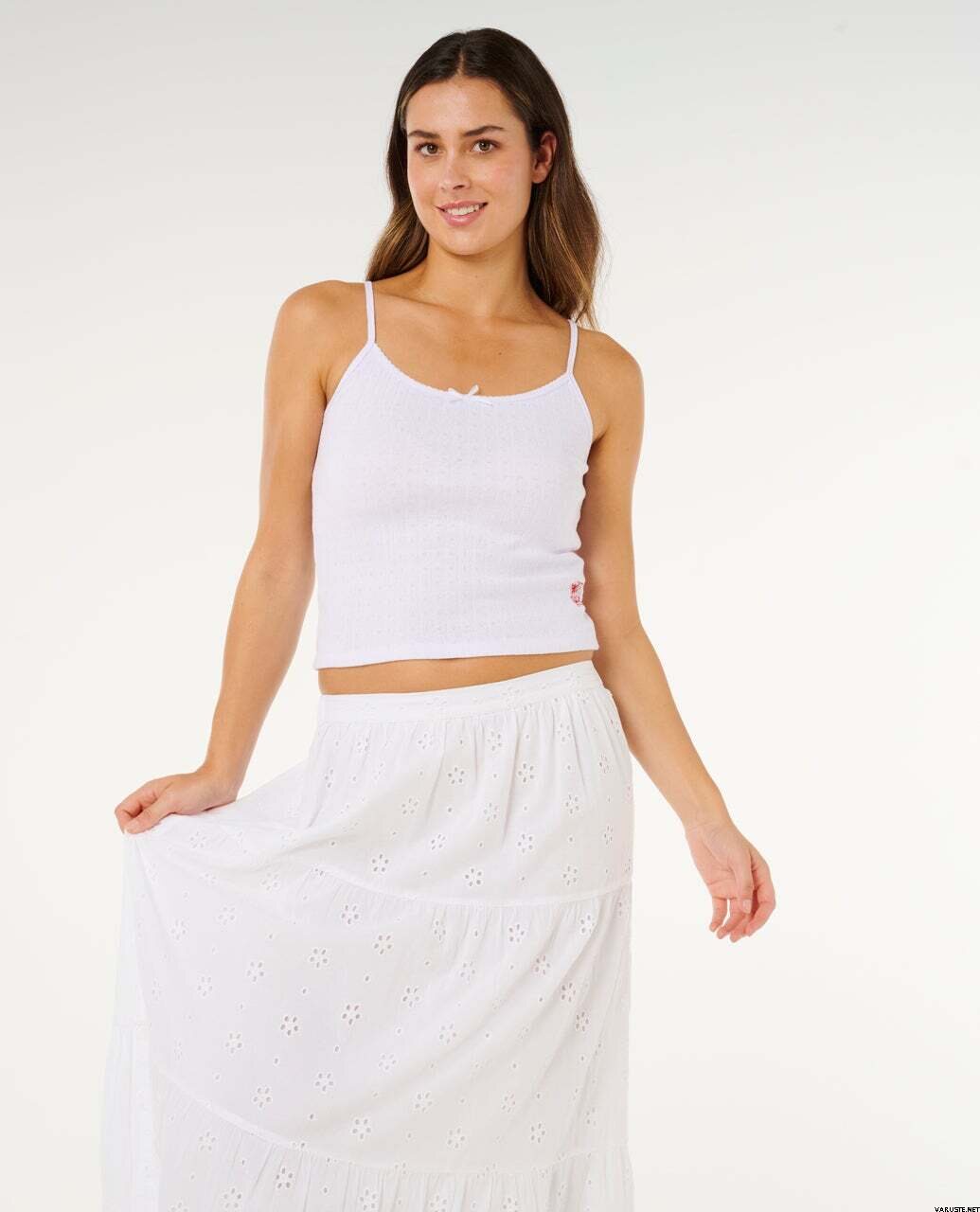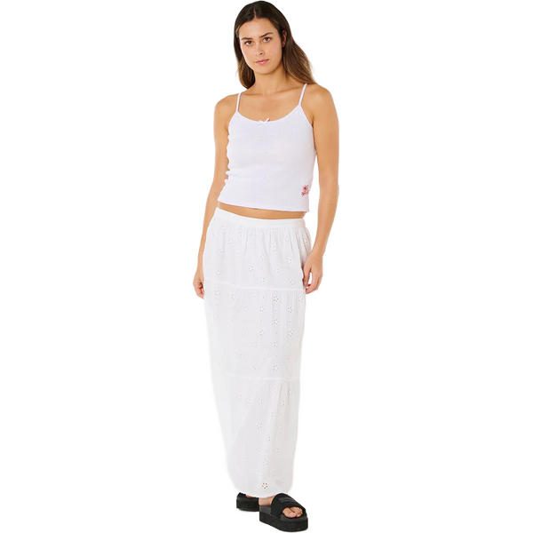 La falda maxi Rip Curl Oasis Broderie para mujer ofrece una sensación ligera y vaporosa con un detallado bordado inglés para un look costero sin esfuerzo. Estas faldas maxi tienen un diseño escalonado que aporta movimiento y una caída fluida, ideal para los días cálidos. La cintura elástica garantiza un ajuste cómodo, mientras que el discreto ribete con el logo metálico completa el diseño con un toque de marca impecable.