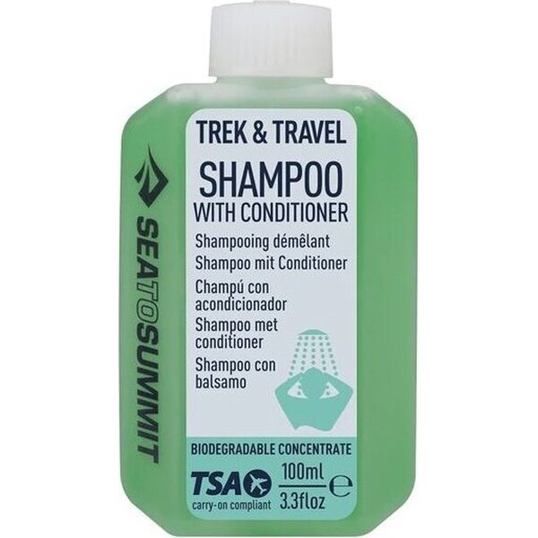 El champú acondicionador líquido Sea to Summit Trek & Travel es una solución ideal para viajes que te mantiene limpio mientras viajas. Este jabón líquido, aprobado por la TSA, está diseñado para caber perfectamente en tu bolso de viaje o mochila de expedición, lo que lo hace ideal para diversas aventuras. Su botella a prueba de fugas garantiza un transporte seguro, mientras que su fórmula ecológica se alinea con el principio de No Dejar Rastro, ofreciendo un toque suave para el cabello, el cuerpo y la ropa.