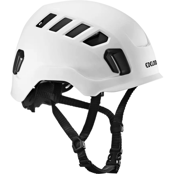 El casco Edelrid Tectum Air destaca por su gran adaptabilidad y sus aberturas de ventilación ajustables para un flujo de aire controlado durante el trabajo. Diseñado para un uso intensivo como EPI (Equipo de Protección Individual), combina una resistente carcasa exterior con una estructura interna amortiguadora para mitigar los impactos. Gracias a sus opciones de montaje integradas, permite añadir accesorios específicos para cada tarea, como protección auditiva o una visera. El ajuste mediante dial trasero y la correa de barbilla ajustable facilitan la estabilidad y la comodidad durante largas jornadas laborales.