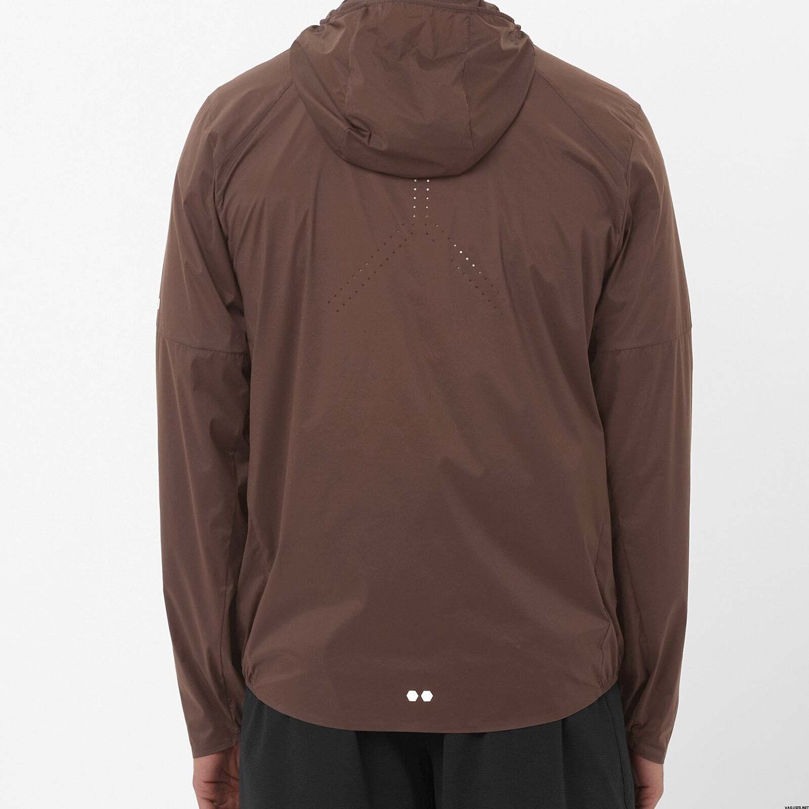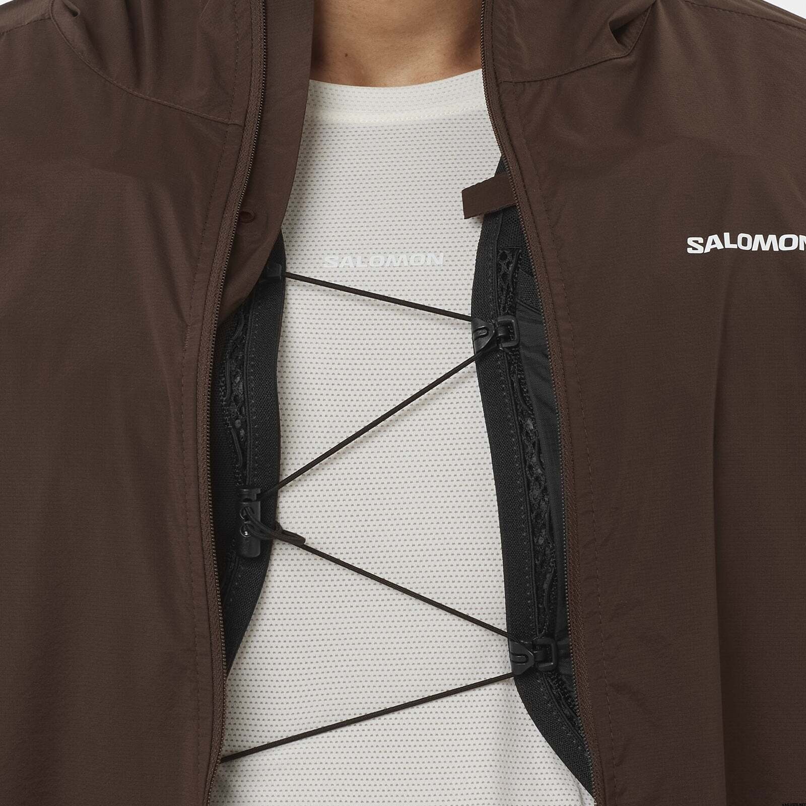 Olge tuule ja vihma eest kaitstud Salomoni PFC-vaba tuulekindla ja vetthülgava kangaga. Sellel on nutikas õhutusava ja strateegiliselt paigutatud laseriga lõigatud augud, mis võimaldavad õhul optimaalse hingavuse tagamiseks voolata. Selle ülikergest, poolläbipaistvast kangast valmistatud minimalistliku disaini saab hõlpsasti pakkida oma vöö niisutava vesti või kotti.