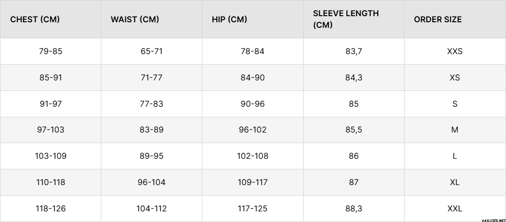 - Rõivas istub kehaga tihedalt, pakkudes samas teie tegevuse ajal suurt liikumisulatust