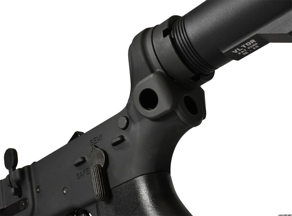 Description du produitThe VLTOR VRA-RA5 is a fully-featured lower receiver. It is the perfect upgrade to an existing weapon, or an excellent start to a new rifle or pistol build. Some of it’s unique features include a beveled magazine-well, over-sized magazine release button, and 3-position QDS “side saddle” endplate with corresponding inlets milled into the receiver body. The VRA-RA5 comes pre-assembled with VLTOR’s proprietary A5 buffer system (standard A5H2 buffer included). The trigger and lower parts kit are standard mil-spec. The body of the VRA-RA5 receiver is milled from a 7075 T6 aluminum forging.