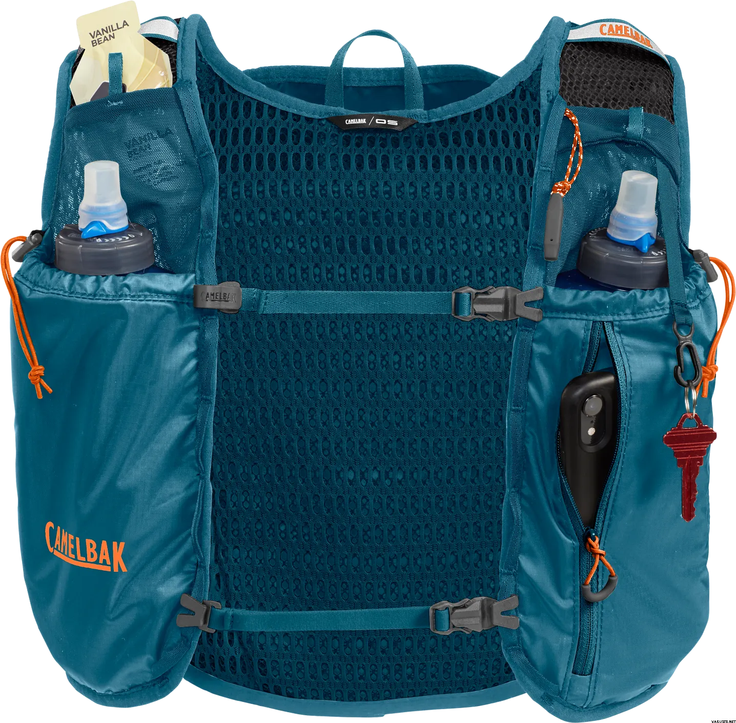 Maille pour une meilleure circulation de l'air et une meilleure respirabilité, assurant un confort optimal tout au long de votre parcours. Doté d'une poche sécurisée pour téléphone et de deux sangles de poitrine réglables, il offre à la fois praticité et ajustement personnalisé. La poche à eau Crux assure une hydratation constante, ce qui en fait un compagnon indispensable pour les courses longue distance.