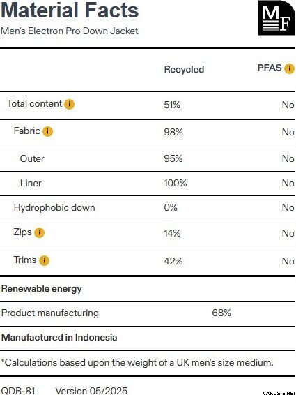 Tissu principal : Pertex Quantum Pro 20D avec DWR sans fluorocarbone