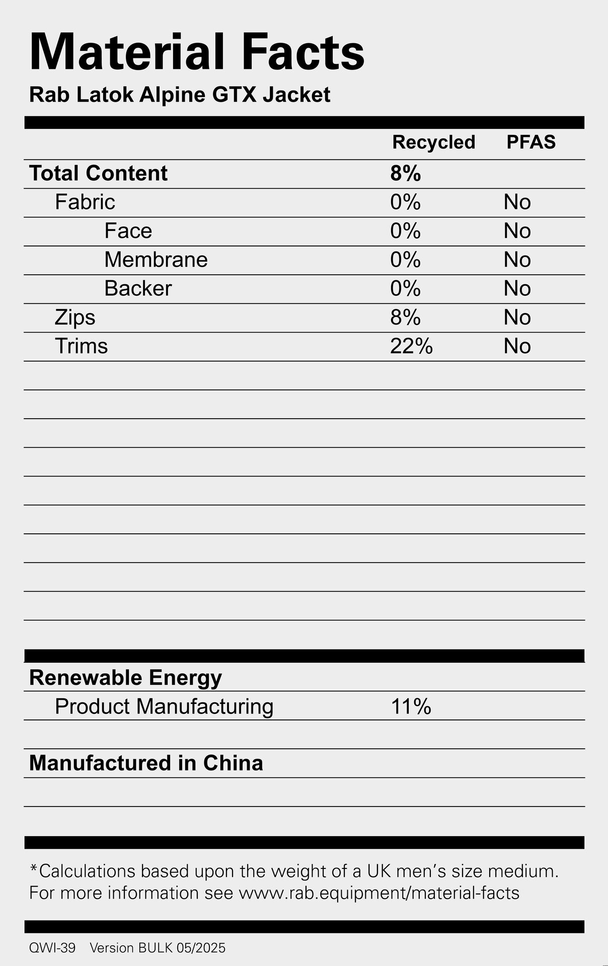 La veste Rab Latok Alpine GTX pour homme est une veste imperméable et robuste conçue pour les ascensions en haute montagne exigeantes. Alliant légèreté et durabilité exceptionnelle, elle offre une protection fiable contre les intempéries. Fabriquée avec la technologie Gore-Tex Pro 40D 3 couches, elle assure une excellente respirabilité, permettant à l'humidité de s'évacuer tout en vous protégeant efficacement des éléments. Cette veste est idéale pour les alpinistes s'attaquant à des ascensions difficiles, vous garantissant de rester au sec et de vous concentrer pleinement sur votre progression.