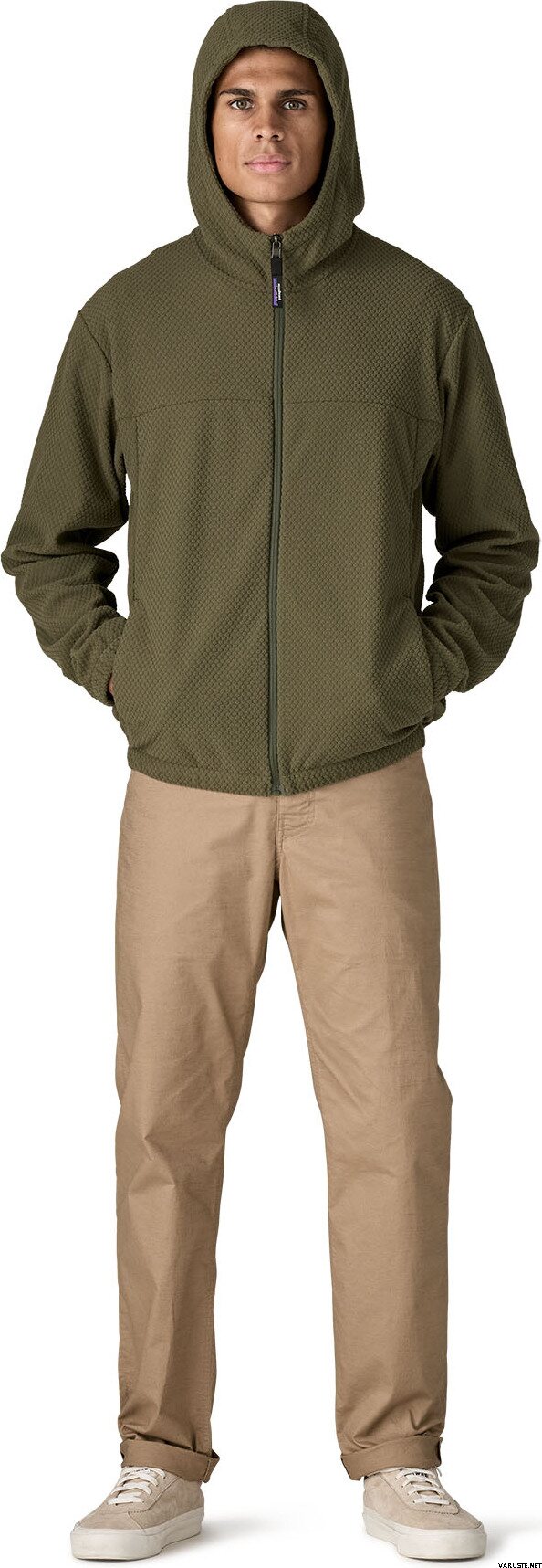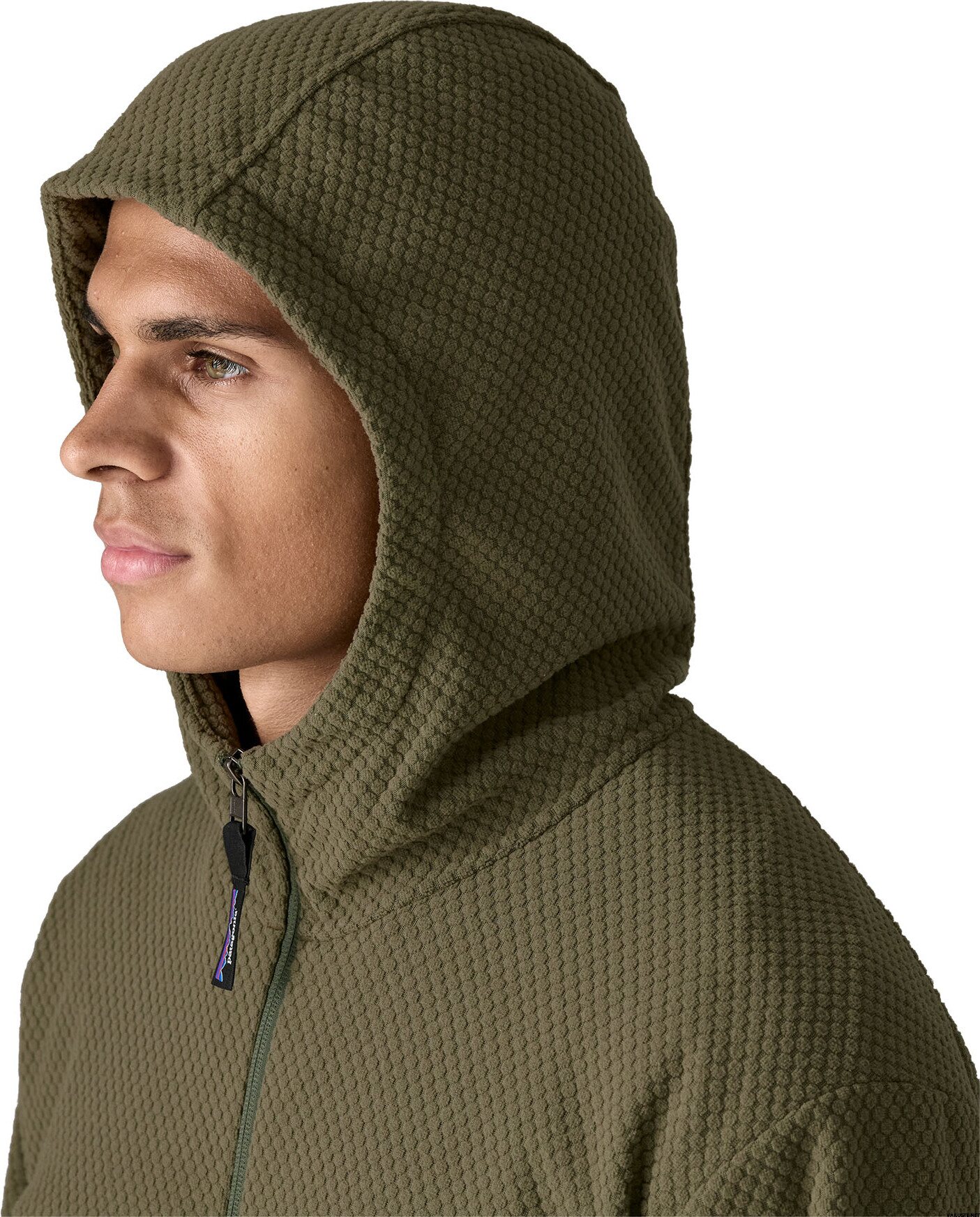 - La capuche en trois parties apporte chaleur et protection supplémentaire autour de la tête.