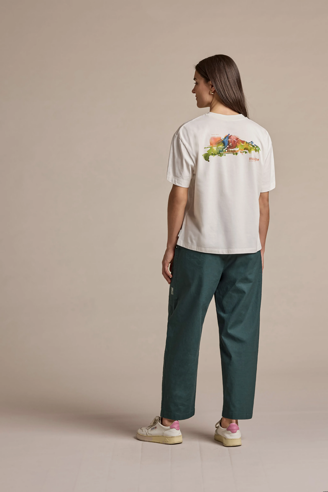 Le t-shirt en coton biologique Maloja TswanaM pour femme se distingue par un imprimé audacieux au dos, façon aquarelle, inspiré des sentiers forestiers, des balades à vélo et des paysages de montagne. Confectionné en coton biologique doux, ce t-shirt est idéal au quotidien, en voyage ou pour se détendre après une sortie à vélo. Sa coupe carrée et ses manches larges lui confèrent une allure décontractée et aérée. Son jersey simple imprimé offre un toucher doux et agréable sur la peau.
