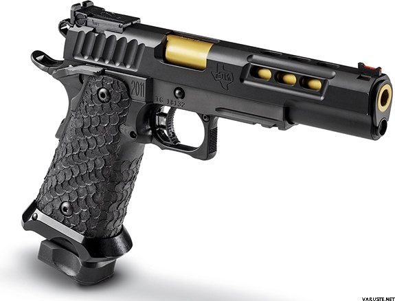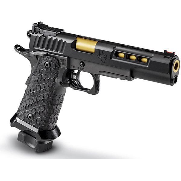 - Sights- STI Adjustable Rear and Fiber Optic Front; Accessory Rail for Light/Laser Sight