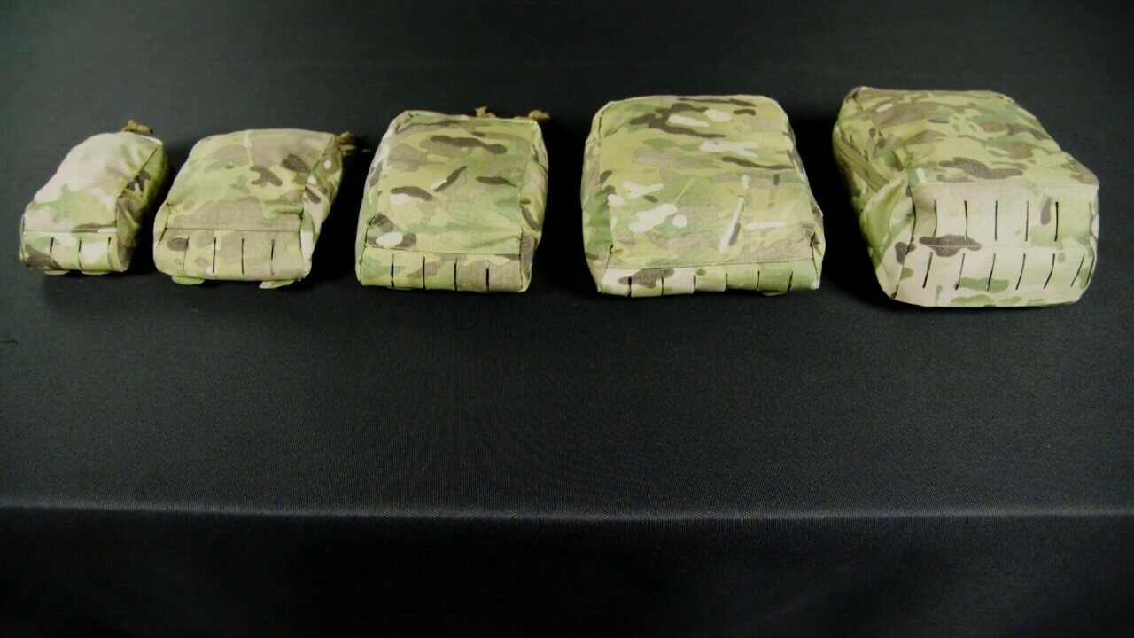 Pochettes polyvalentes à fermeture éclair en 4 tailles. Les plus petits peuvent contenir des outils multiples, des aides à la navigation, un kit de nettoyage d'armes ou de petits objets similaires, tandis que les plus grands peuvent contenir des NVD, des vestes légères ou une petite vessie H2O.