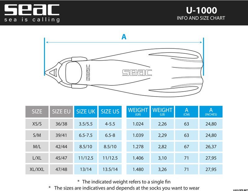 - Seac U-1000 are the perfect diving fins for intensive and professional use, even the military sector