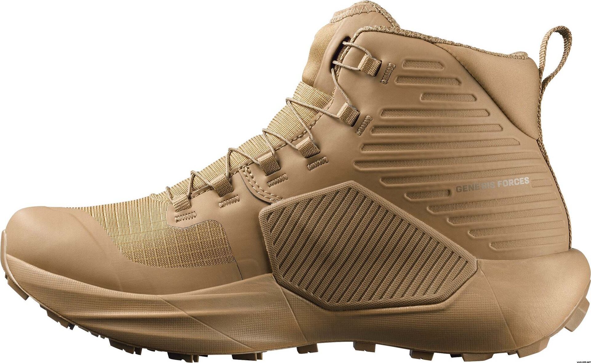 A Salomon Genesis Forces Mid Unisex egy bevetésre kész taktikai bakancs, amely hosszú távú kényelmet és megbízható talpvédelmet biztosít, melyet az ultra távolsági ösvénylábbeli ihletett. Úgy tervezték, hogy megbirkózzon az igényes használattal, támasztó vázzal és párnázott középtalppal, amely segít csökkenteni a fáradtságot hosszabb napok alatt. A futófelület és a gumikeverék úgy lett kialakítva, hogy a tapadás kiszámítható legyen vegyes talajon, a keménytől a laza felületekig. Tartós felsőrésze kopásálló, miközben alacsony profilú marad taktikai környezetben.