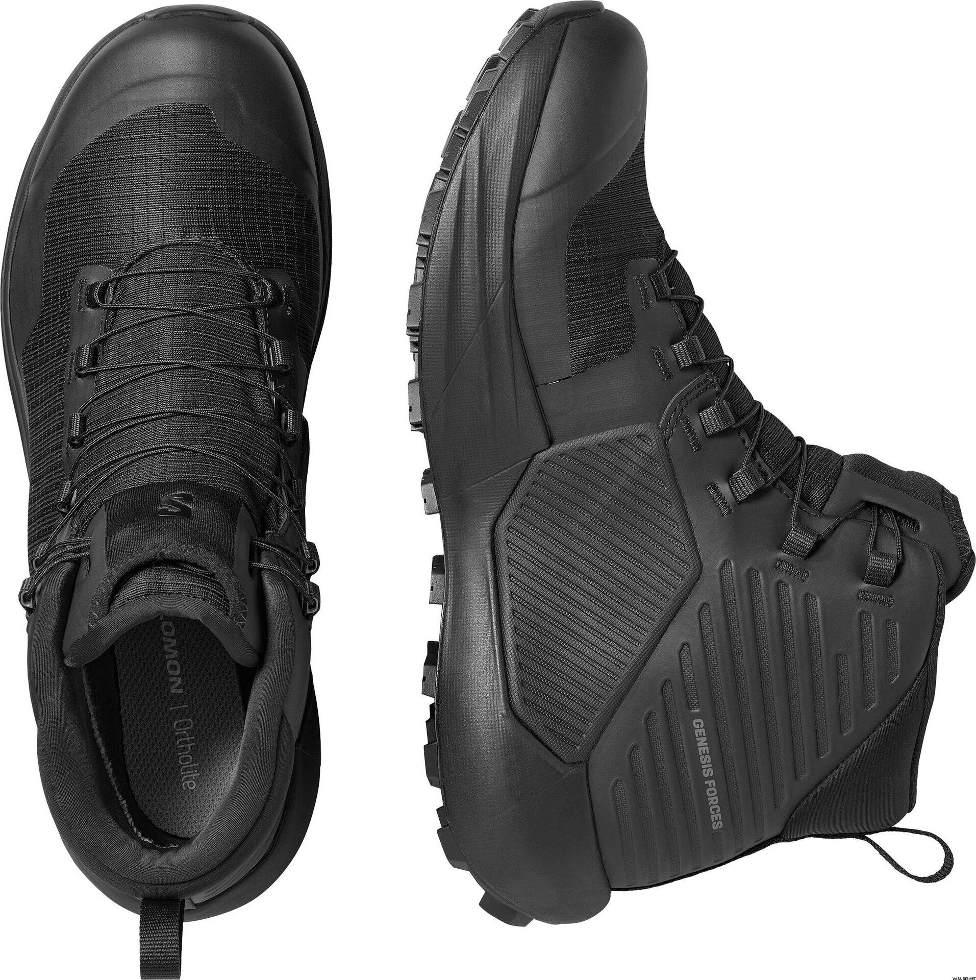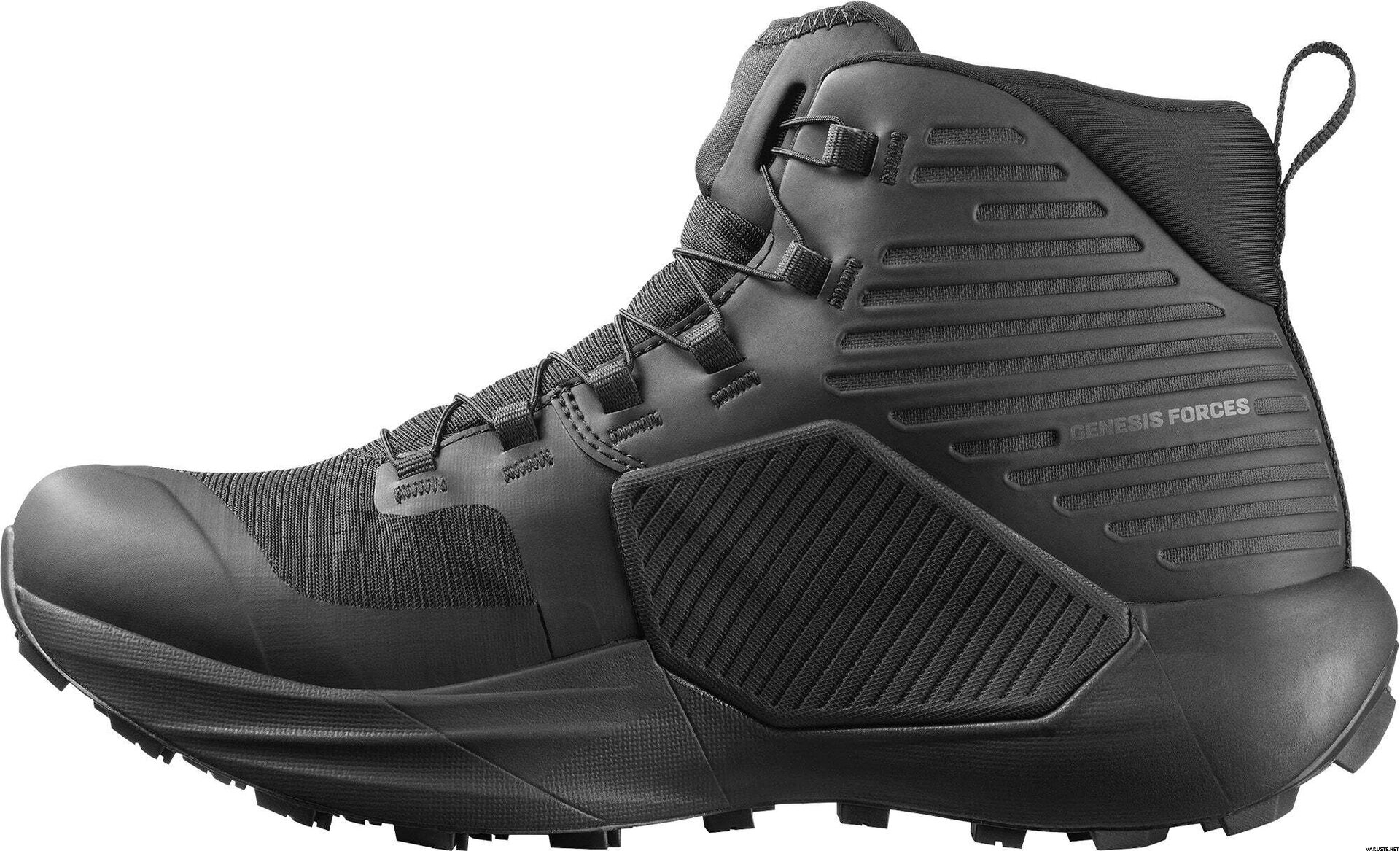 A Salomon Genesis Forces Mid GTX Unisex megbízható vízálló védelemmel és igényes használatra tervezett strapabíró felépítéssel tűnik ki. Ezek a taktikai bakancsok az ultratávú terepfutó cipők kényelmét és hosszú távú érzetét kölcsönzik, miközben extra szerkezetet biztosítanak a komoly talpvédelem érdekében. Nedves időjárásra és változó terepre tervezték őket, ahol a biztos talajfogás és a stabil tartás számít. A kialakítás középpontjában a diszkrét és tartósság áll a hosszan tartó, nehéz körülmények közötti viselés során.