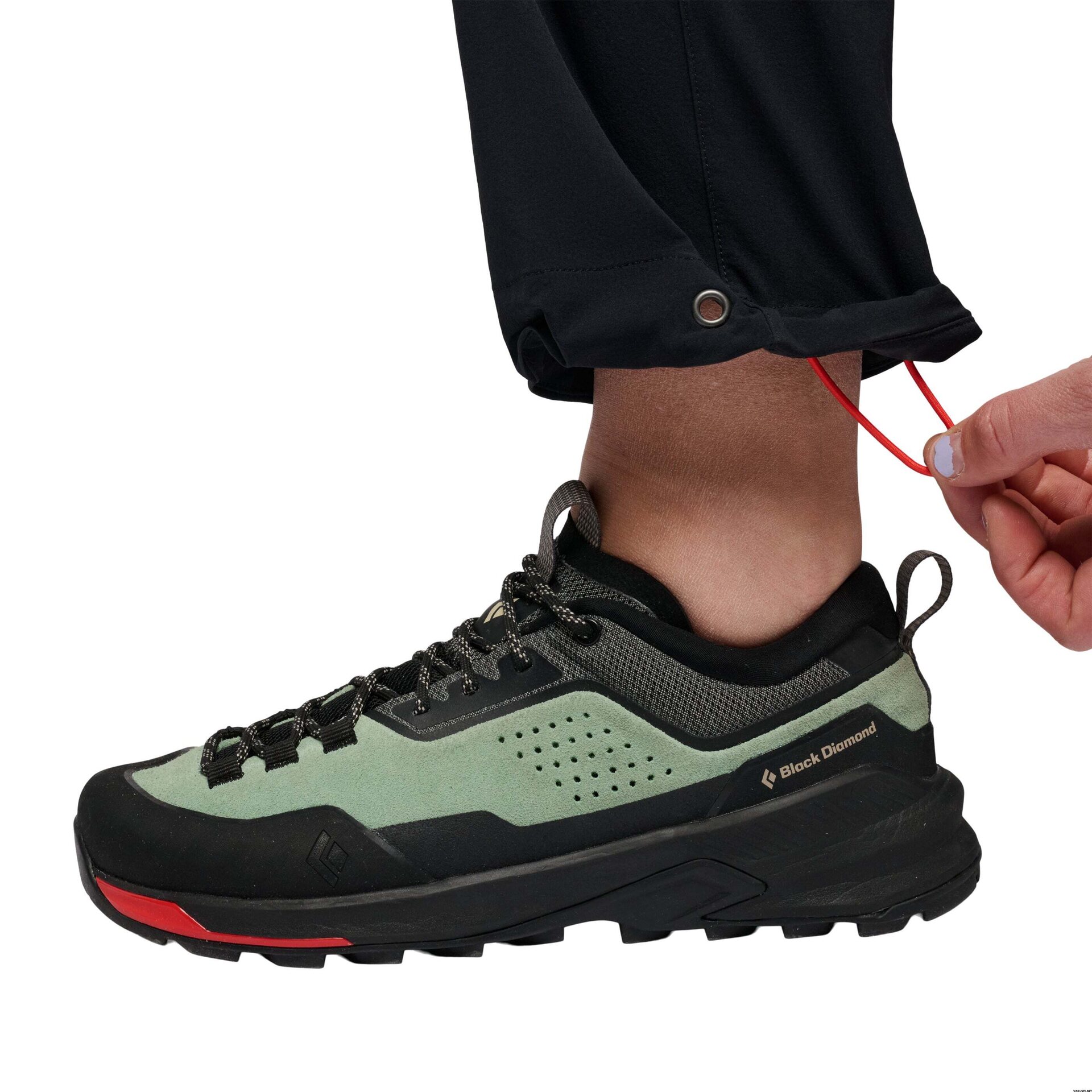 A Black Diamond Alpine Pants Womens a népszerű, enyhe időjárásra tervezett mászónadrág kifinomult változata, amelyet azok számára terveztek, akik könnyű védelmet keresnek a hegyekben. Ezek a női mászónadrágok négy irányban rugalmas anyagból készültek, amely tartós és kényelmes is, így tökéletesek többnapos mászásokhoz és vadonbeli kalandokhoz. A megújult dizájn továbbfejlesztett illeszkedést, zsebeket és övszerkezetet tartalmaz, biztosítva a praktikumot és a könnyű használatot. A PFAS-mentes DWR bevonatnak köszönhetően ezek a nadrágok megbízható védelmet nyújtanak a könnyű eső ellen, míg az állítható szárak és az integrált öv testreszabható illeszkedést biztosítanak.