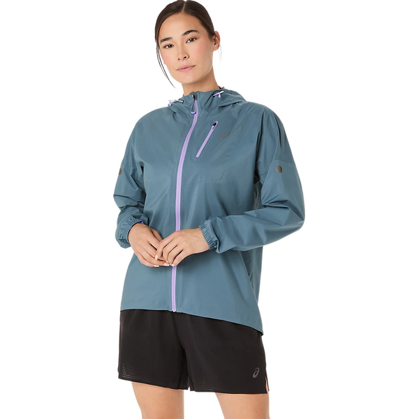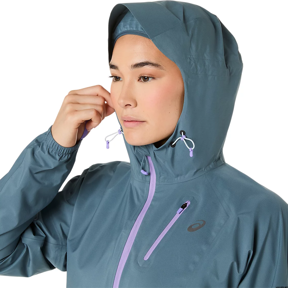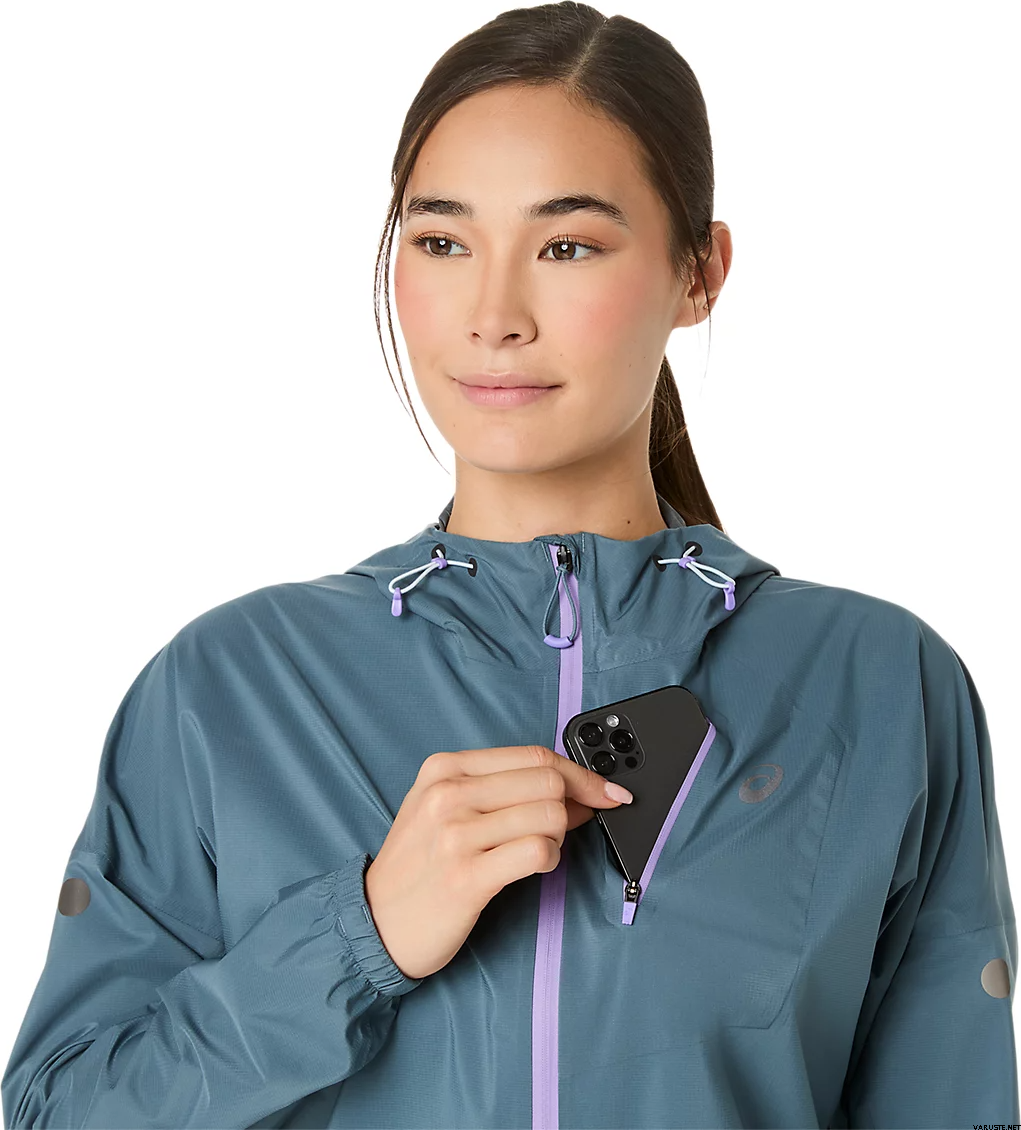 Az Asics Fujitrail Elite Waterproof Womens kabát egy nagy teljesítményű, vízálló réteg, amely nedves és szeles terepfutáshoz készült, megbízható védelemmel. Ez a női futókabát a könnyű érzetet ötvözi a lélegző kényelemmel, így kényelmes marad, amikor a tempó emelkedik. A fényvisszaverő elemek javítják a láthatóságot gyenge fényviszonyok mellett, míg a magas gallér és a hüvelykujjlyukak extra védelmet nyújtanak a kitett időben. Mellkaszsebbe is elfér, így könnyen elfér a változó időjárás esetén.