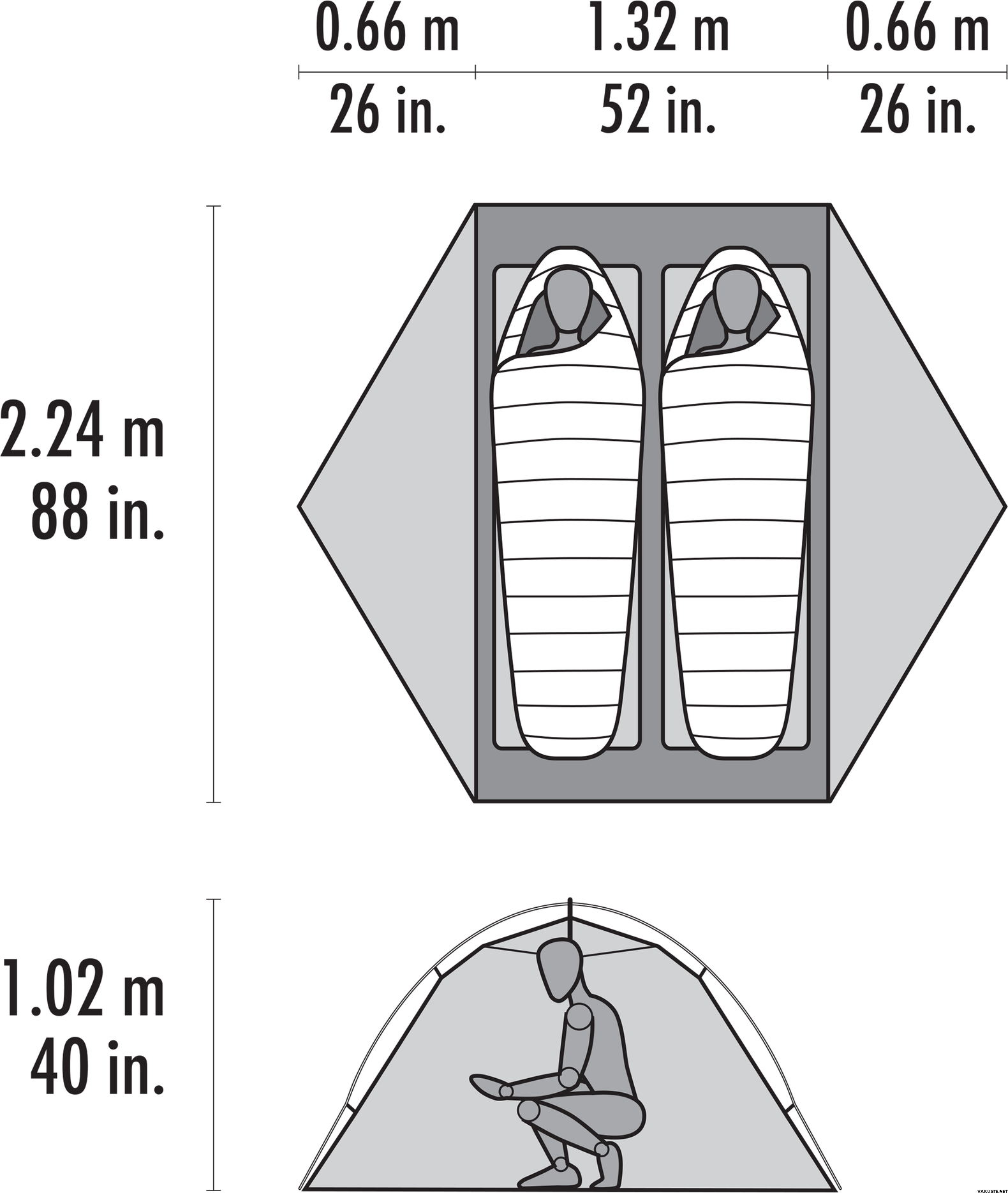 • Rainfly ajtók Staydry esőcsatornákkal és kihajtható szellőzőnyílásokkal a jobb légáramlás érdekében nedves időben