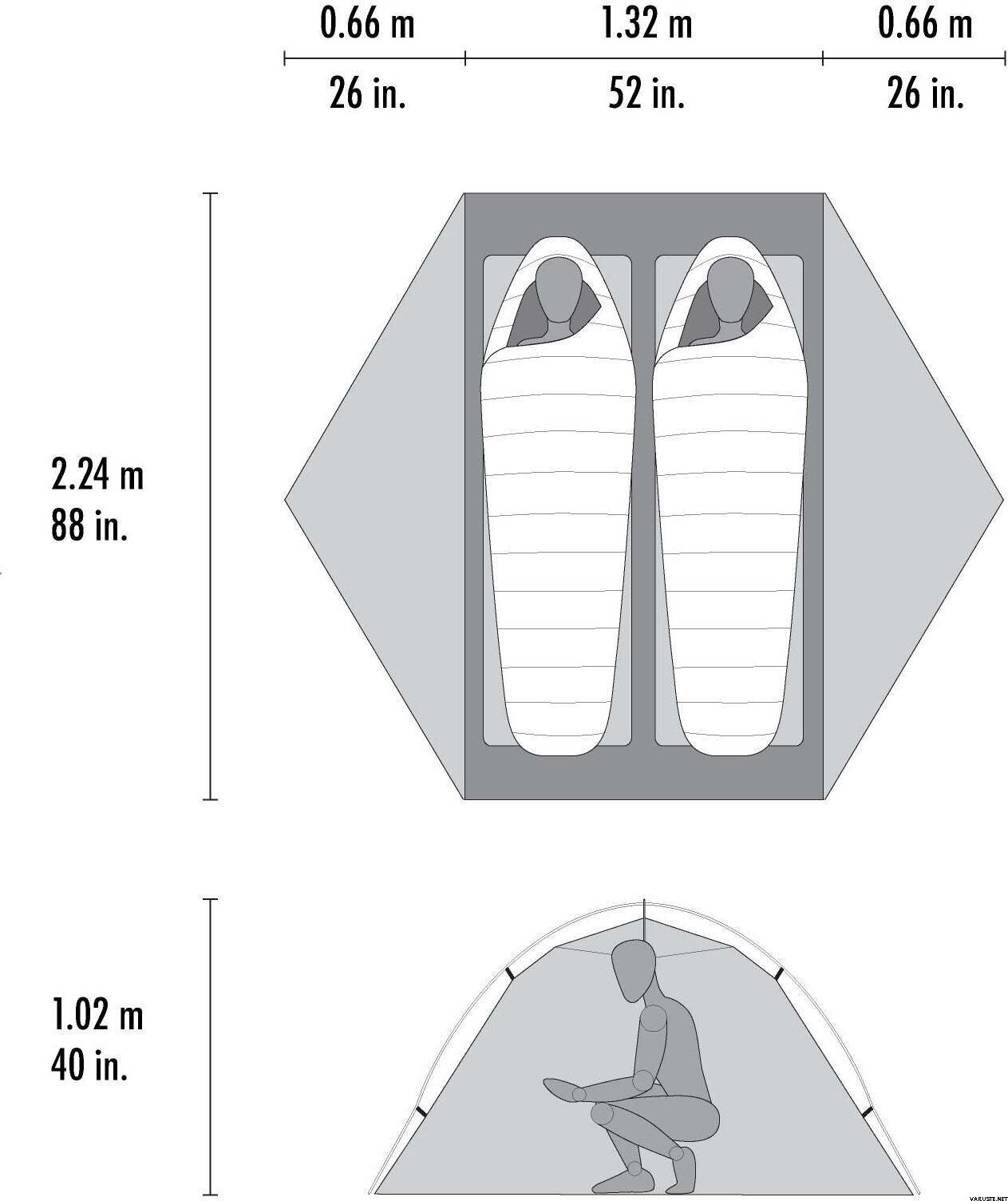 Rainfly anyag: oldatban festett 20D szakadásálló nejlon, 1200 mm poliéter-uretán és PFAS-mentes szilikon