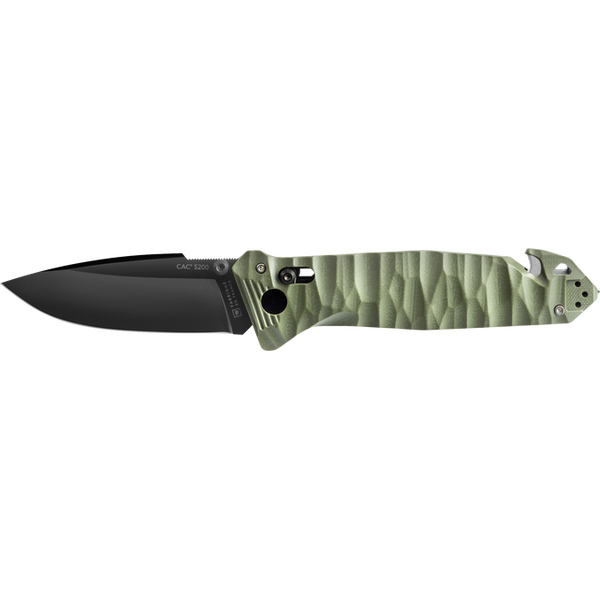 A TB Outdoor CAC S200 francia bicska, G10 (dugóhúzó nélkül), masszív, nagy igénybevételre tervezett, megbízható mindennapi hordozáshoz és igényes terepi használathoz. Ezeket az összecsukható késeket gyors és magabiztos kezelésre tervezték, a biztonságos fogást a megbízható vágási teljesítmény érdekében választott pengeacéllal ötvözve. A különálló szíjvágó extra képességeket biztosít azokban a helyzetekben, ahol a sebesség számít. Ez a verzió villa és késtok nélkül kapható.