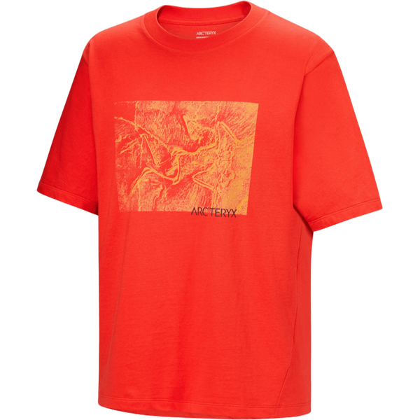 La Arc'teryx Kragg Cotton Lithographica Short Sleeve Mens è una robusta t-shirt da uomo realizzata in jersey di cotone pettinato pesante da 240 g/m². Questa maglietta presenta un'esclusiva grafica di un uccello fossilizzato, che offre un mix di comfort naturale e resistenza, rendendola adatta sia per il bouldering che per l'abbigliamento casual. La sua vestibilità comoda e le ascelle rinforzate garantiscono libertà di movimento e comfort per tutto il giorno.