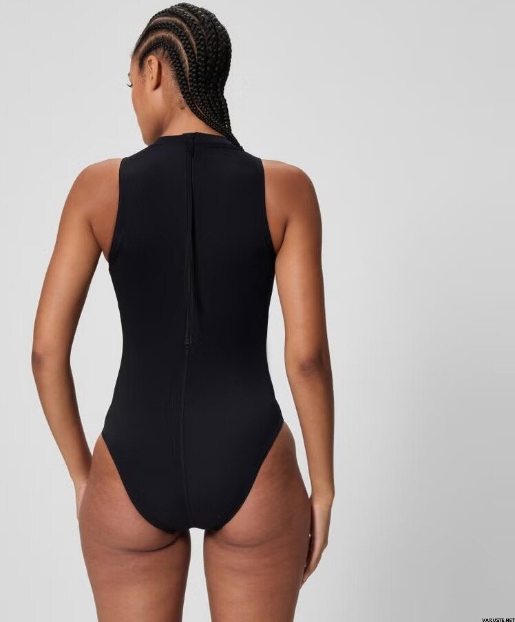 - La cerniera posteriore con tirante facilita l'indossamento e la rimozione del costume da bagno.