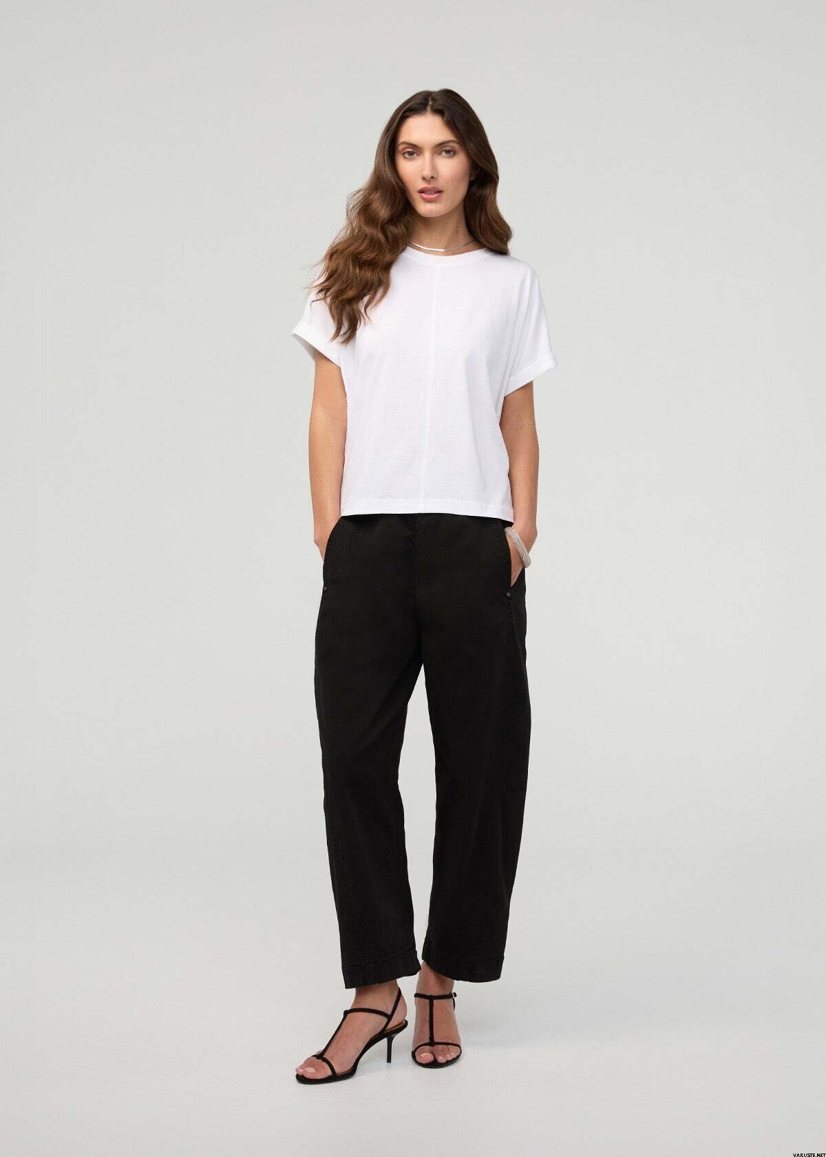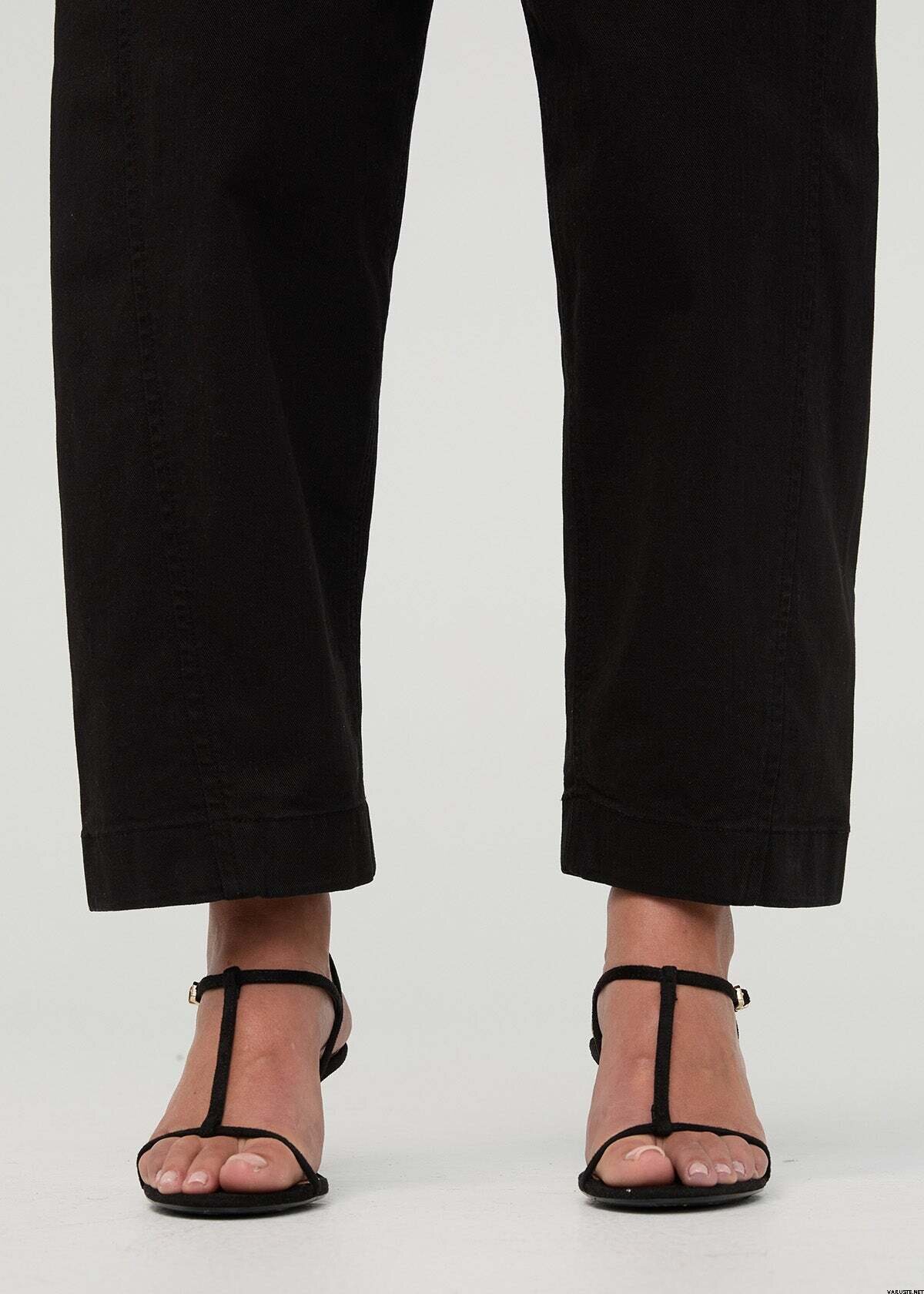 - Modello a gamba dritta con fianchi e cosce ampi che si restringono verso l'orlo.