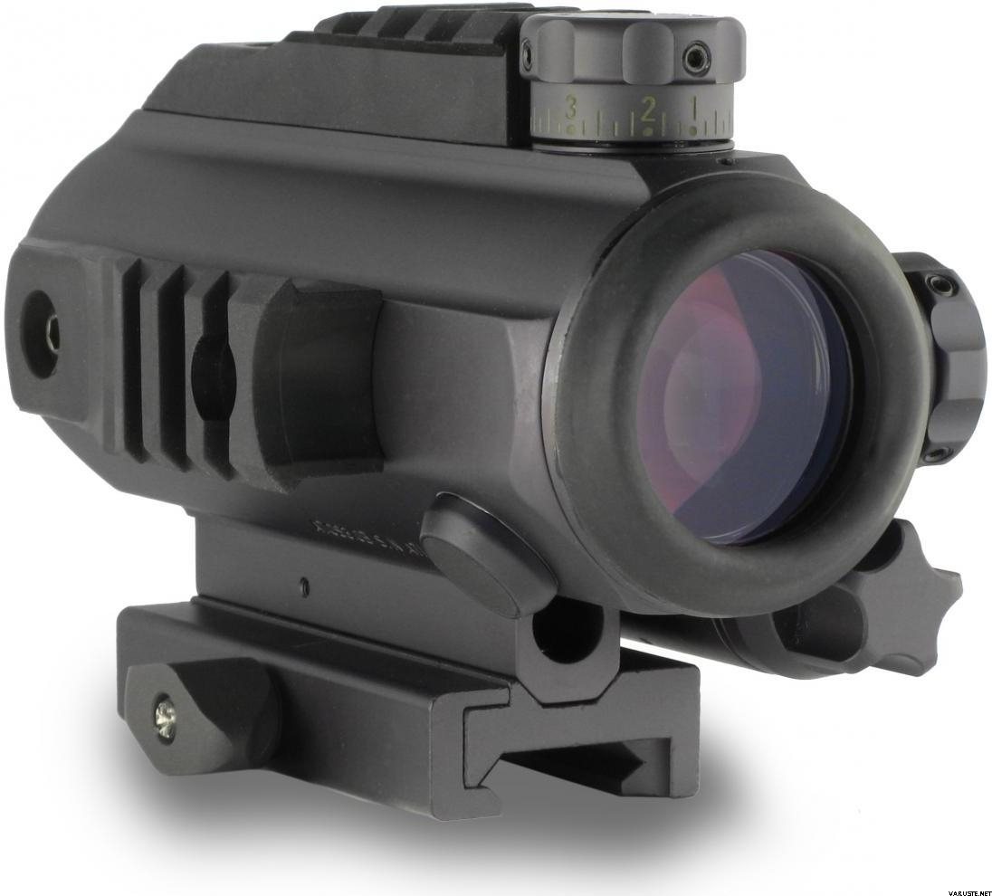 A one-piece aluminum housing coupled with shock-absorbing rubber bumpers enable the sight to withstand the severe stresses of modern combat operations. The device can be supplied with either a ballistically-calibrated reticle or calibrated external elevation and windage adjustments and may be mounted directly to flat-top receivers or M16/AR15 handles. Optional MIL-STD-1913 auxiliary mounting rails enable flexible mounting solutions for other accessories.