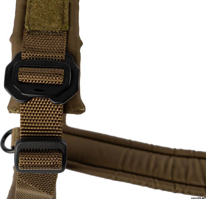 非常に使いやすいハーネス - 特に金属製のバックルに紐を付けて簡単に締めたり開けたりできるのが利点です。 小さなマイナス点は、調整ストラップの柔らかさです。ジュニアのペインカは、目が避けられたとき、ほぼ瞬時にストラップを噛むことができました。