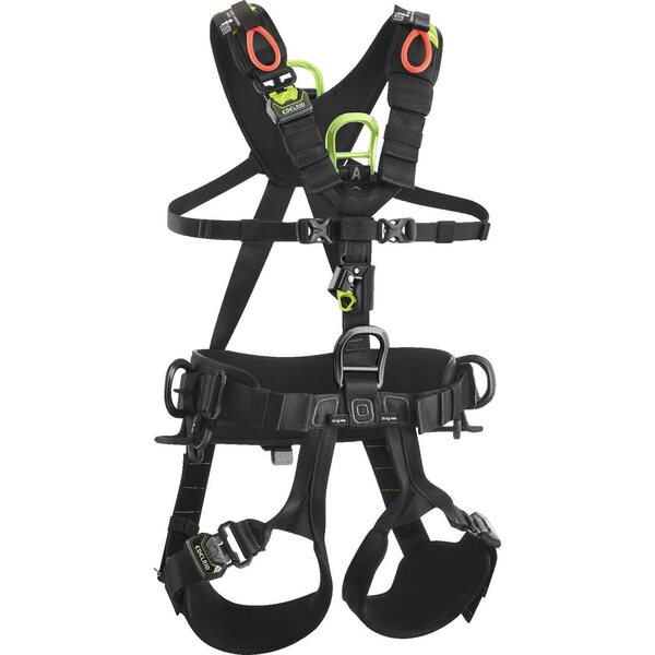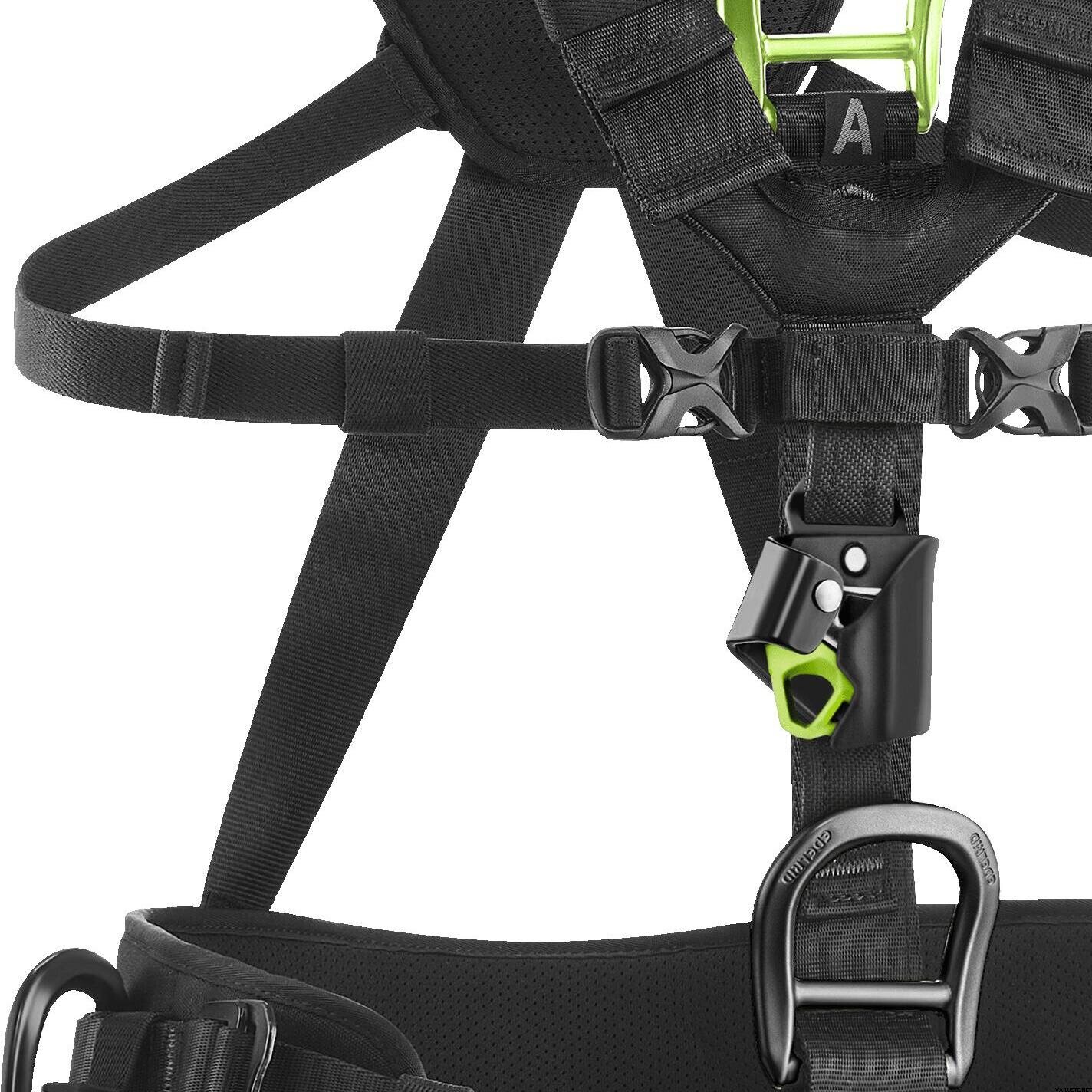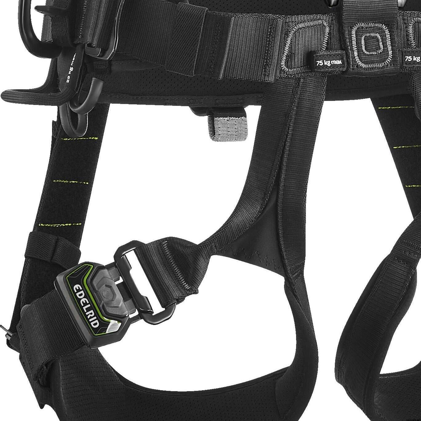 エーデルリッド・バーティック・トリプルロック・ハーネスは、ロープアクセスを効率化するために設計された高性能ワークハーネスです。一体型のチェストクルーザー・チェストアセンダーにより、より速くスムーズな登攀を実現します。このハーネスは、墜落制止、作業位置決め、座位ハーネスの機能を兼ね備えており、要求の厳しいプロフェッショナルなロープシステムに最適です。トリプルロックバックル付きのサイドエントリーにより、ハーネスを頭からかぶることなく簡単に着脱できます。腰から肩への荷重伝達と、長時間の吊り下げをサポートする形状のレッグループ設計により、荷重を運ぶ際の快適性が向上しています。