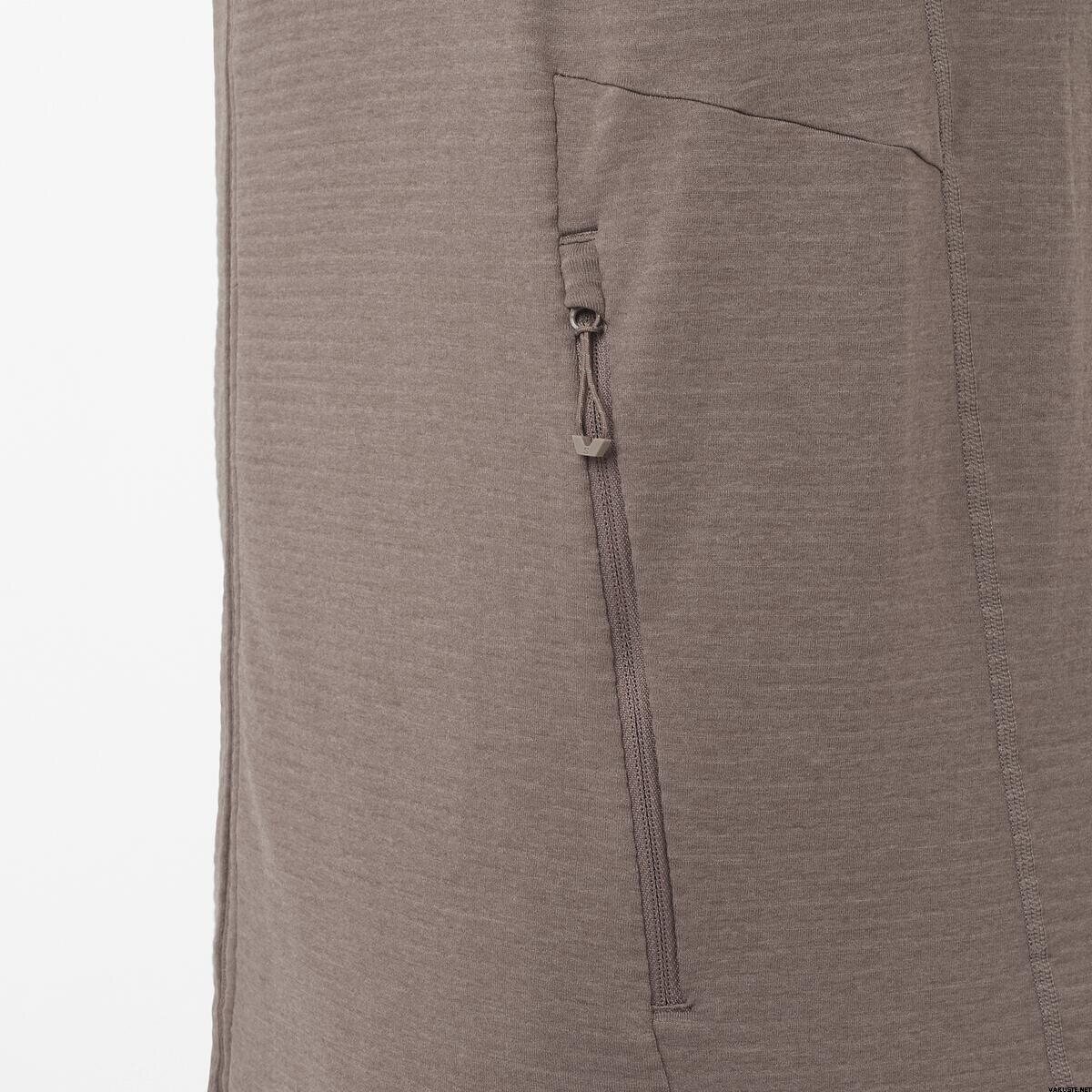 Fijn jasje zonder capuchon, als tweede laag tijdens het wandelen. Erg praktisch met de twee zakken en neemt niet veel ruimte in beslag in de rugzak. Kwaliteit van Salomon, nog nooit teleurgesteld.