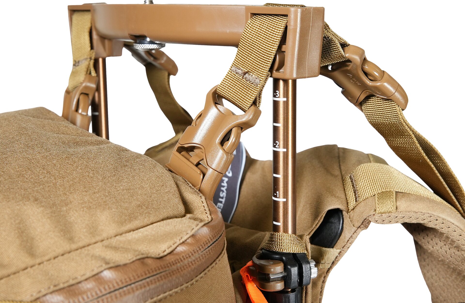 Hunting Light Yoke easily micro adjusts to the torso length. Integrated ¼” - 20 optics thumbscrew allows you to thread your camera, spotting scope or rifle mount directly to the frame for optimal stabilization. Telescoping aluminum frame.