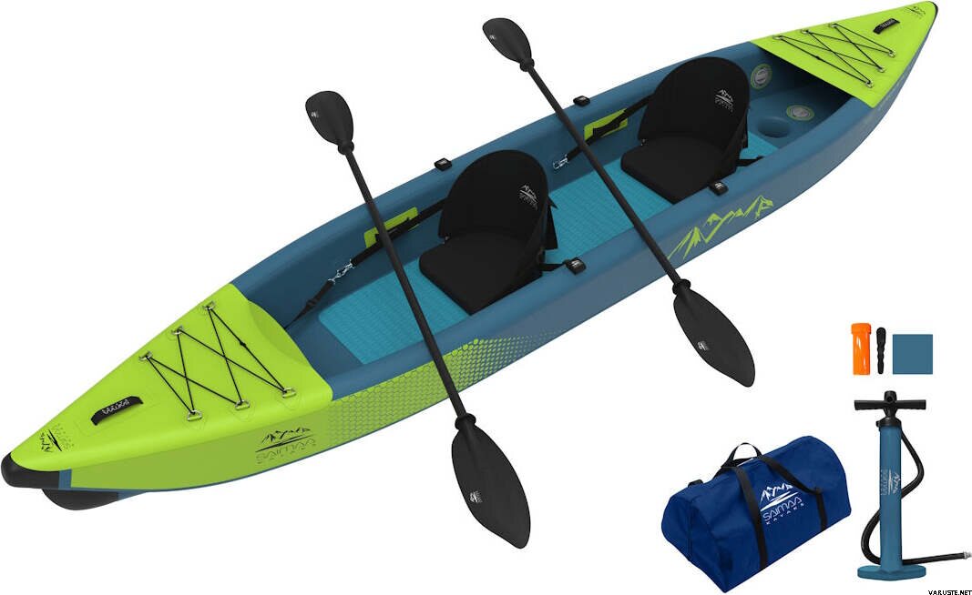 Pakken inkluderer to åreårer, en benk og fotstøtte, en rask dual-action pumpe (pumper ved trekking og dytting), en bæreveske, to finner, gummistropper for transport av varer, og et reparasjonssett. Kanoen er rask å fylle opp for padling på ca. 15 minutter og lett å pakke tilbake i bærevesken på få minutter. En kajakk av høy kvalitet kommer med tre års garanti.