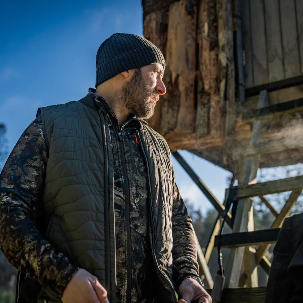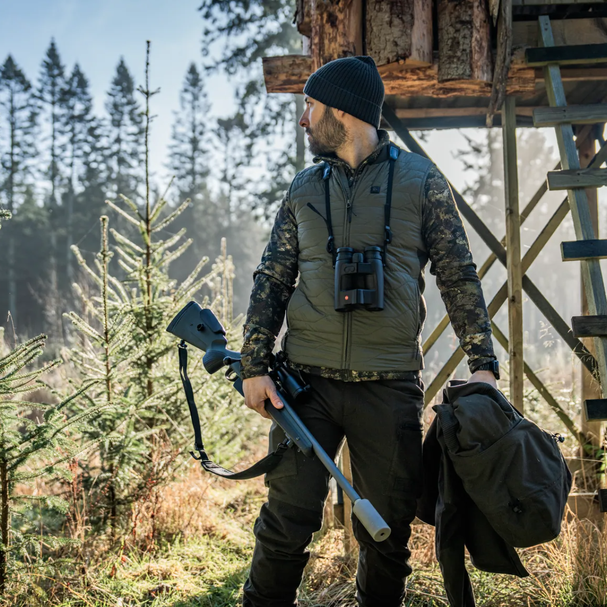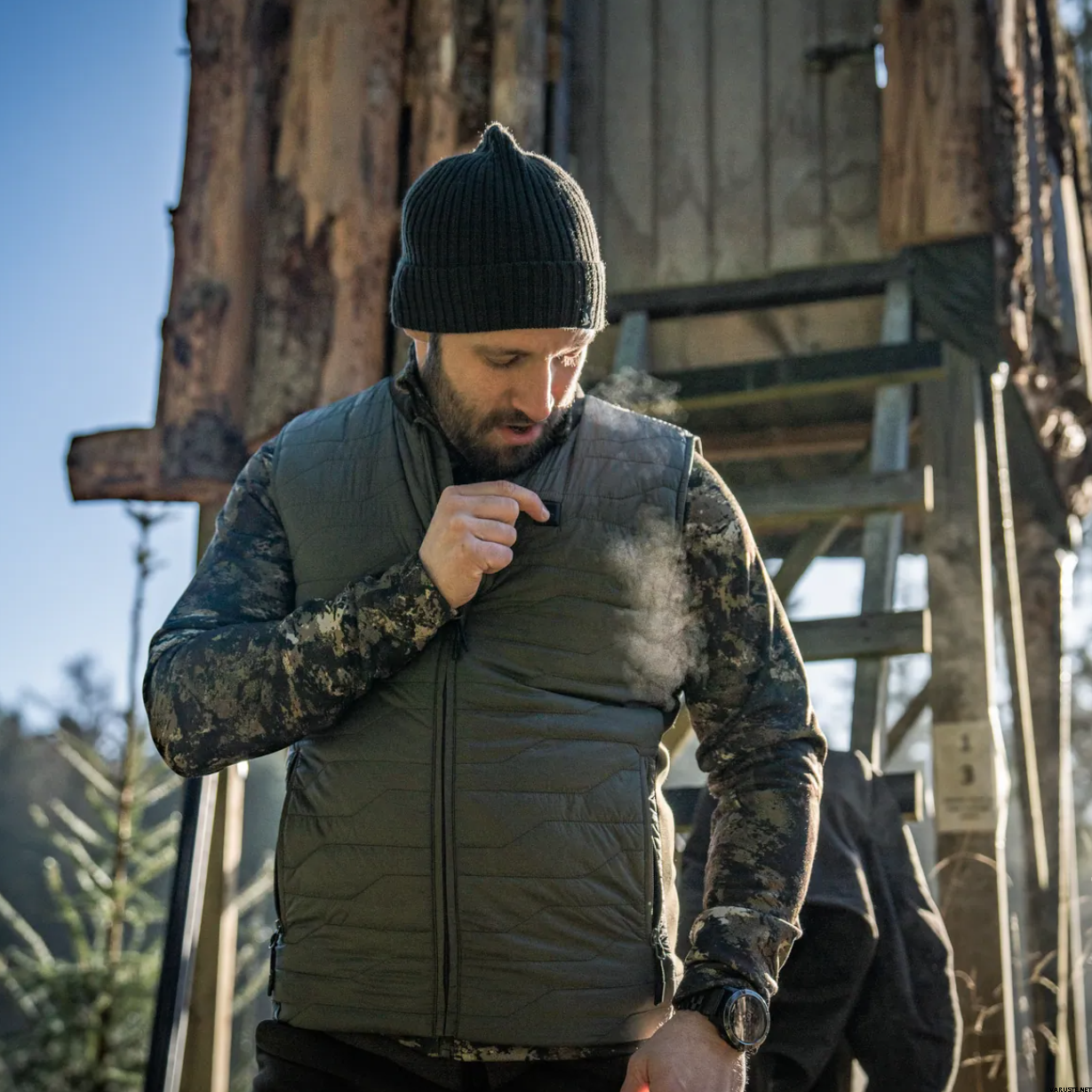 Seeland Celsius Heat Liner Waistcoat er en varmevest laget for jegere som trosser kalde omgivelser. Dette mellomlagsplagget kombinerer lett, polstret polyamid foran og øvre del av ryggen med et 4-veis stretchstoff og myk fleece på nedre del av ryggen, noe som sikrer en tettsittende og fleksibel passform. Den har tre justerbare varmepaneler, som enkelt styres via en brystknapp med fargeindikatorer. Vesten har sidelommer med glidelås, en innvendig brystlomme og et varmelagrende sølvfilmfôr, noe som gjør den praktisk for lag-på-lag-på-lag-på-lag-vest. Med en USB-C-tilkobling for kompatibilitet med strømbank tilbyr den avansert varmeteknologi for forbedret komfort under kjølige jakter.