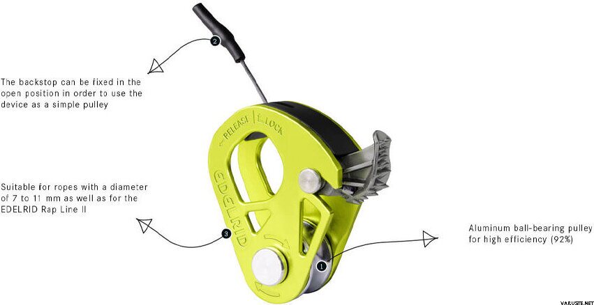 • Fungerer som en tauklemme for oppstigning eller som en trinse med fremdriftsfangst