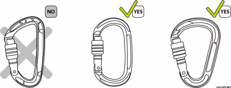 • Enheten må brukes med en oval eller pæreformet (HMS) karabinkrok
