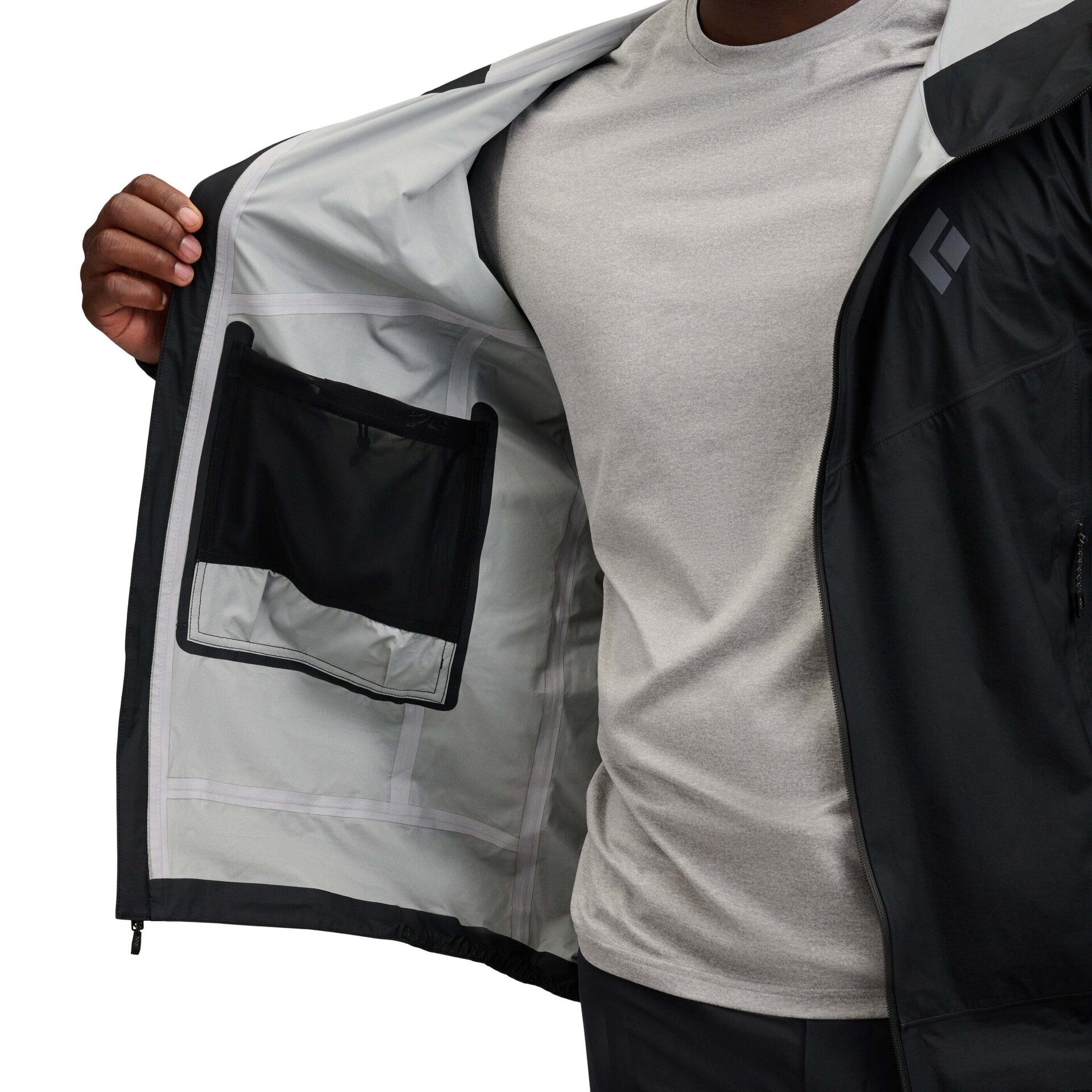 Black Diamond Deploy 3L Shell Jacket Mens er en lett, kompakt og fullstendig vanntett skalljakke designet for fjelleventyr. Denne jakken, med BD.dry 3L-teknologi, gir utmerket beskyttelse mot vind og regn, noe som gjør den til et pålitelig valg for utfordrende alpine forhold. Opprinnelig laget for fjellløpere, gjør den ultralette designen og pakkbarheten den egnet for ulike utendørsaktiviteter, fra klatring i villmarken til fjellturer. Med funksjoner som en enkeltjusterbar hette og elastiske mansjetter sikrer den komfort og funksjonalitet på farten.